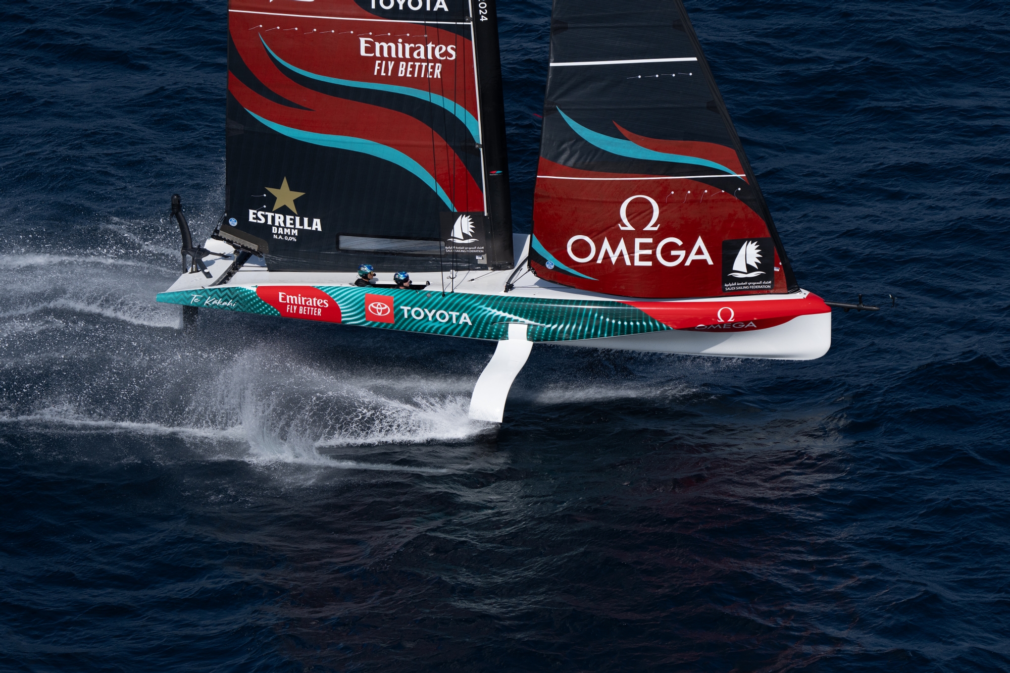 Emirates Team New Zealand, the Defenders of the America’s Cup and INEOS Britannia, the Challenger of Record, were the only two teams to venture out of the Jeddah Yacht Club Marina and face down the swells, keen to assist the race officials ahead of racing in earnest.