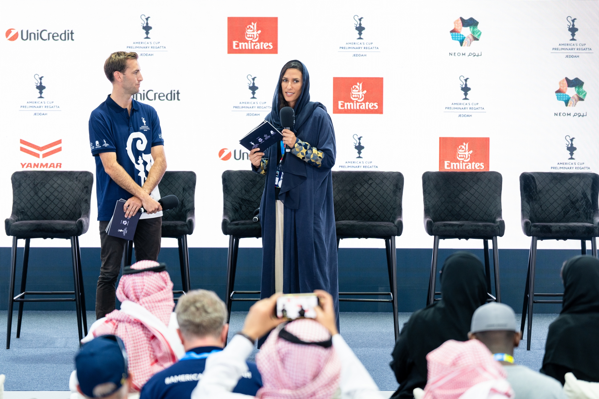 Ahead of the sailor’s presentation, the stage was taken by Samia Bagdady, the Chief Executive of the Saudi Sailing Federation who explained to the audience the rationale behind the staging of the regatta saying: “We’re super excited and it is in line with the Kingdom’s 2030 sporting vision to increase participation numbers and local awareness. It’s the first time in the America’s Cup history that the oldest event in international sport comes to the Red Sea and we are very excited to showcase what the Red Sea has to offer for sailing.”