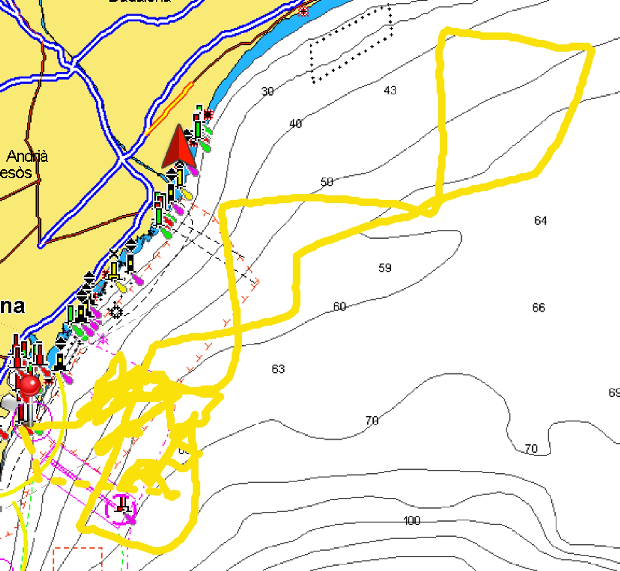After that one speed test, at 14:55 once back at the race-course area, there was a new half an hour break in which a batteries replacement took place. Before closing the day, after three warm-up laps and a few practice pre-starts, two two-lap upwind-downwind virtual races were carried out using virtual marks and virtual boundaries. Both match races were won by AC40(a). There was a third start, but the race was abandoned at the top mark, when both boats continued to sail upwind towards the port.