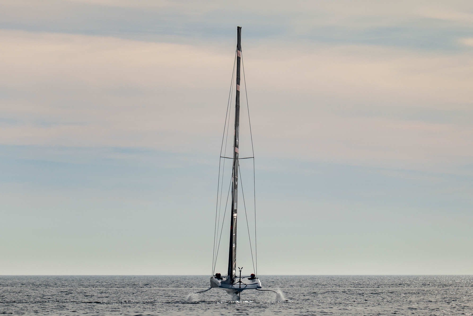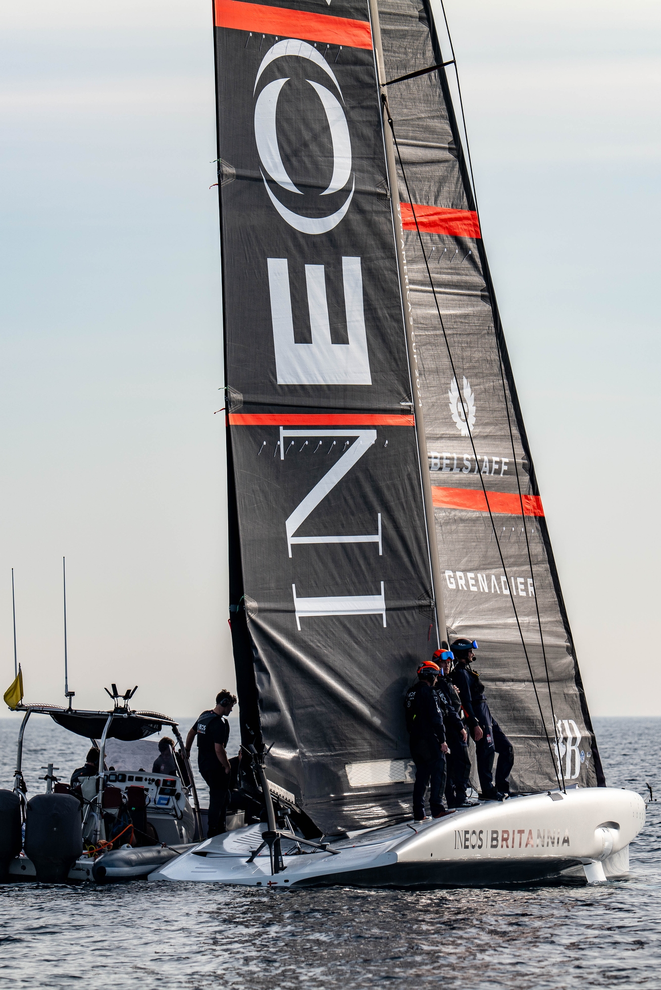 On Friday, INEOS Britannia were the only America’s Cup team out on the still waters of Barcelona, hoping for a breeze build that failed to materialise. With two boats on the water, the intention was to continue the pre-start and short course racing but instead it was pure technique sailing at the very lowest end of the scale.