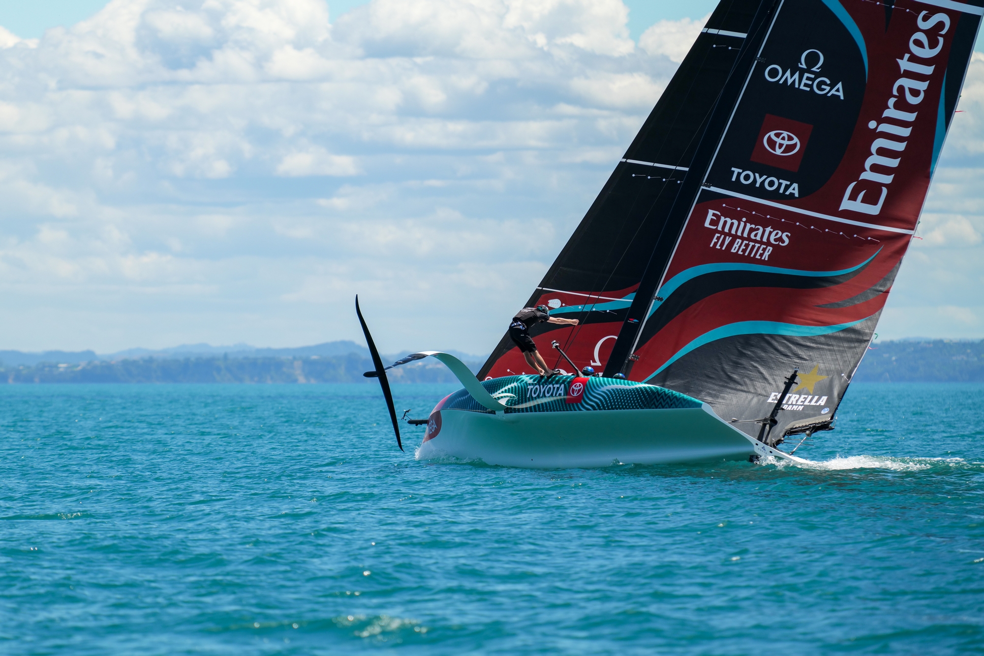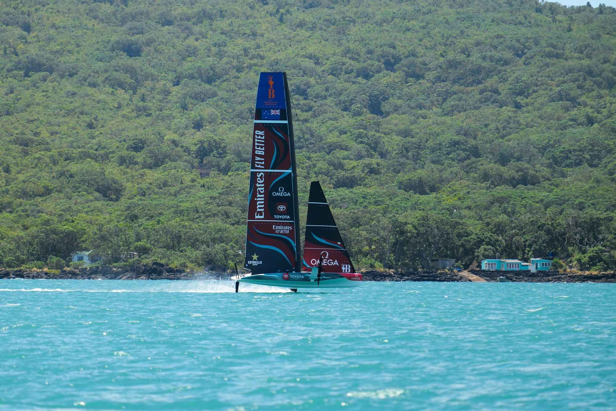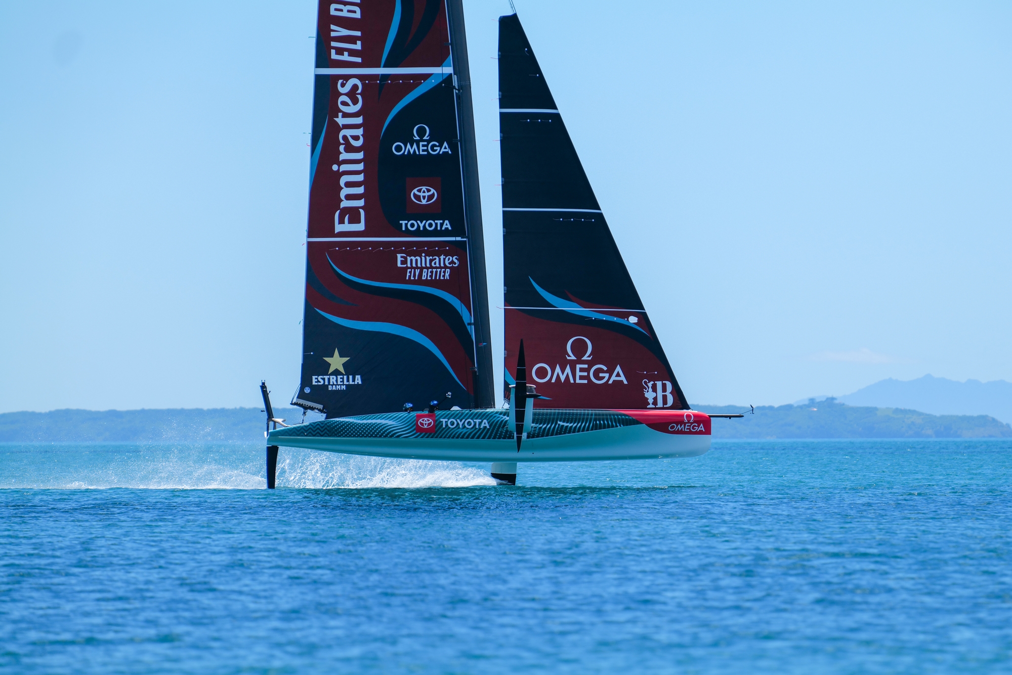 It appeared that ETNZ had perfectly planned around these conditions, although for the first 20 minutes the team did struggle to find enough breeze to stay on the foils. Eventually they set up the session off the north-west side of Rangitoto Island. The team sailed many upwinds and downwinds in a small sailing area to make the most of the breeze accelerating along the shore of Rangitoto. It proved to be another session concentrating on a number of tacks and gybes.