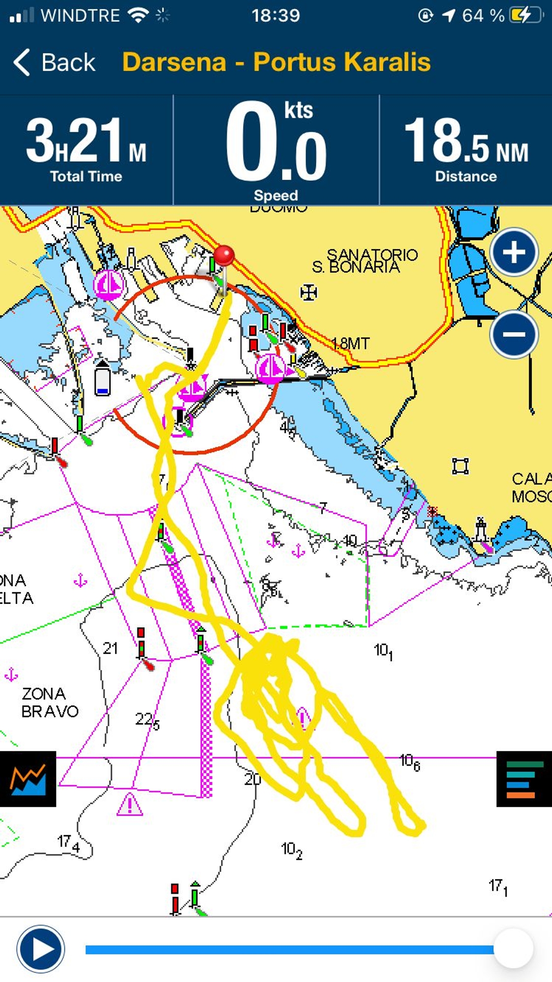 At 11:25 both boats started to head back towards the harbour. However, in the way, there were four times in which they got released, attempting to sail with small local gusts. Unfortunately, there was no success. At 11:58 both boats entered the port, lowered their sails, and docked at 12:18. Sebastian Peri Brusa – Recon on INEOS Britannia