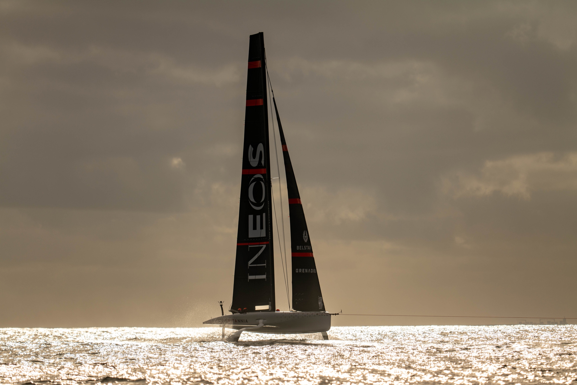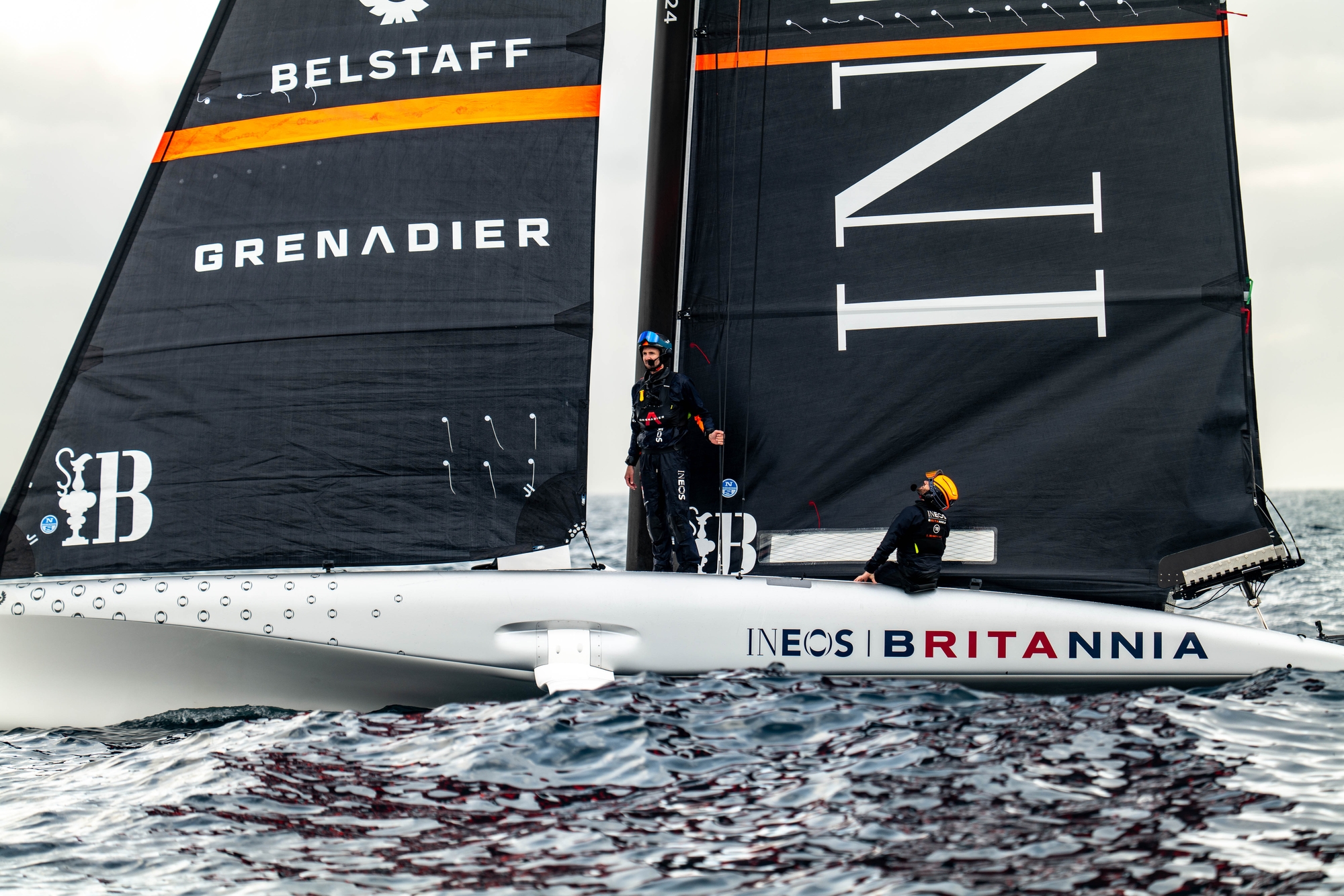 On-Water Recon Report – INEOS Britannia: The British team craned to the water their two AC40s, Sienna(b) and Athena(a) in full one-design configuration, at 06.30 and 06.47, respectively; that had been left with their masts up and out of the shed overnight. Normal routine activities were performed before docking out at 08.00, as planned.
