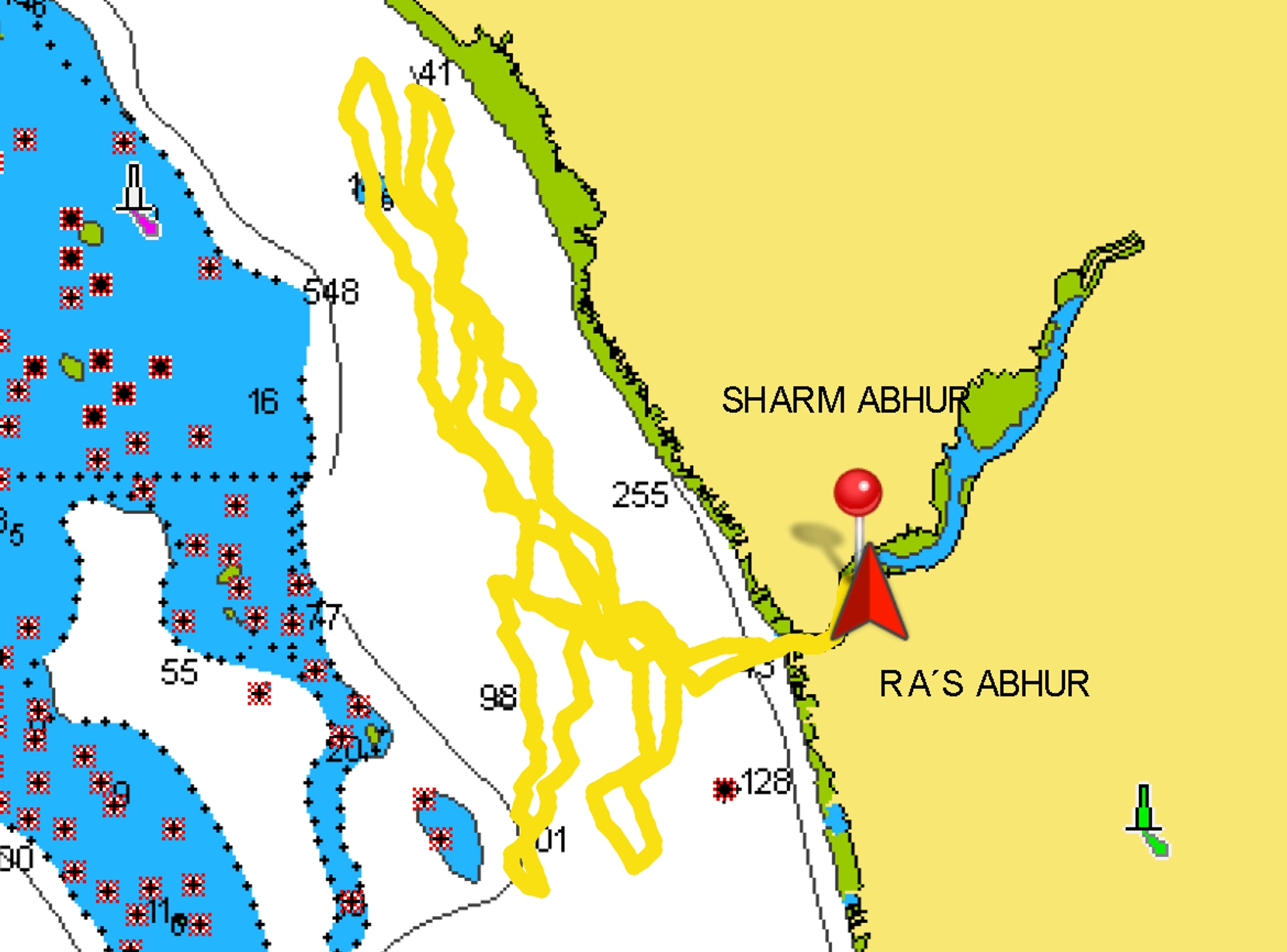 Black came to a stop outside Obhur Creek, seemingly unable to control the jib, and subsequently dropped the sails, as the Red boat continued back to base.