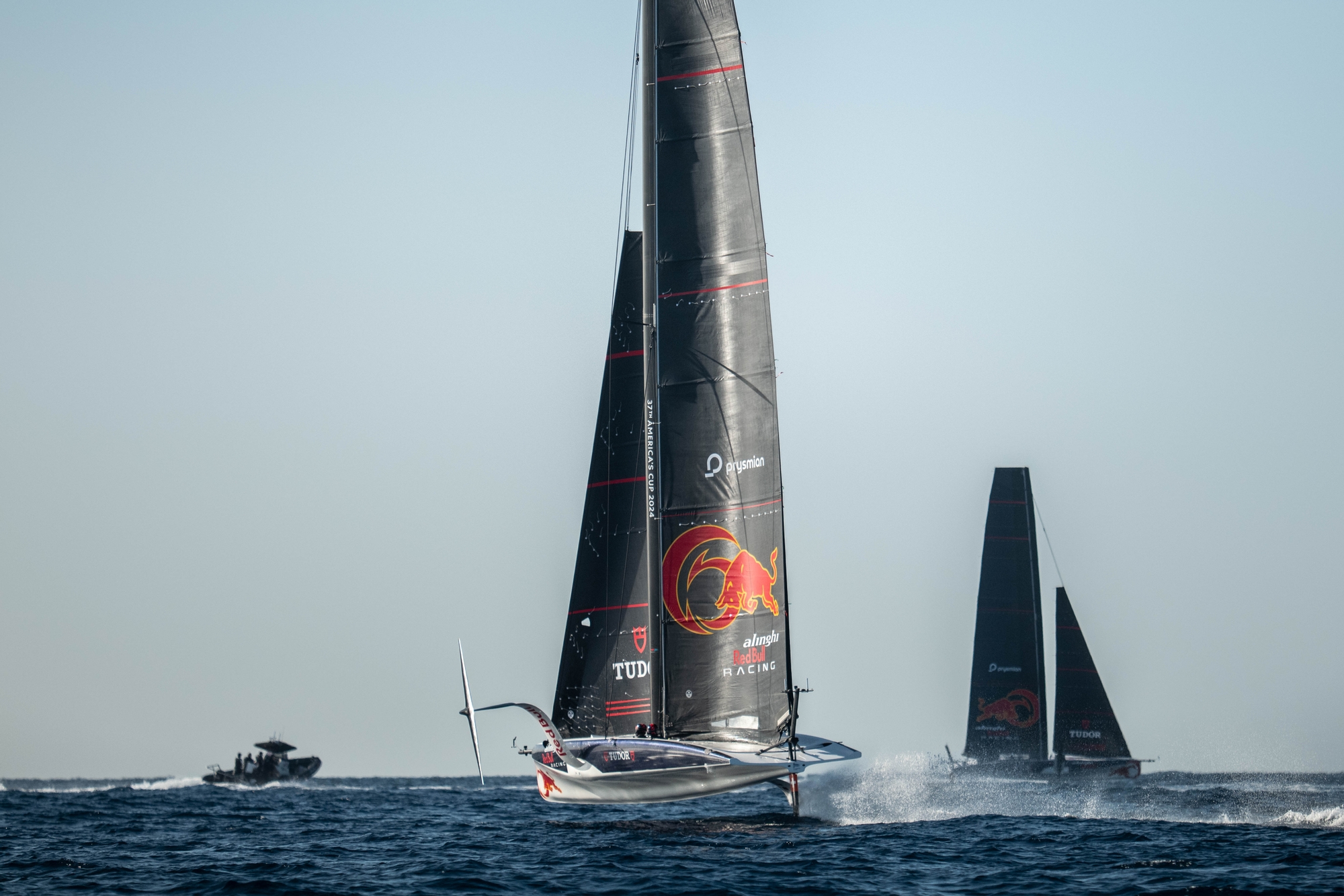 Speaking afterwards, Lucien Cujean, always a superb interviewee, summed up the day and was also asked about any conclusions with regards the different LEQ mainsails that the two boats were running: “I think the day was quite tricky for both boats because the wind was coming from offshore so pretty puffy and shifty but overall, I think both boats managed pretty well in the race area and then we just tried to do some line-ups and tried to figure out which boat was faster than the other and I think we ended up with some good data to analyse for tonight. Nothing bigger to see from the water or from inside the boat but I think we really enjoyed the day and it's been a while now in Jeddah and we’re feeling a bit tired, and the boats are starting to feeling a bit tired too.”