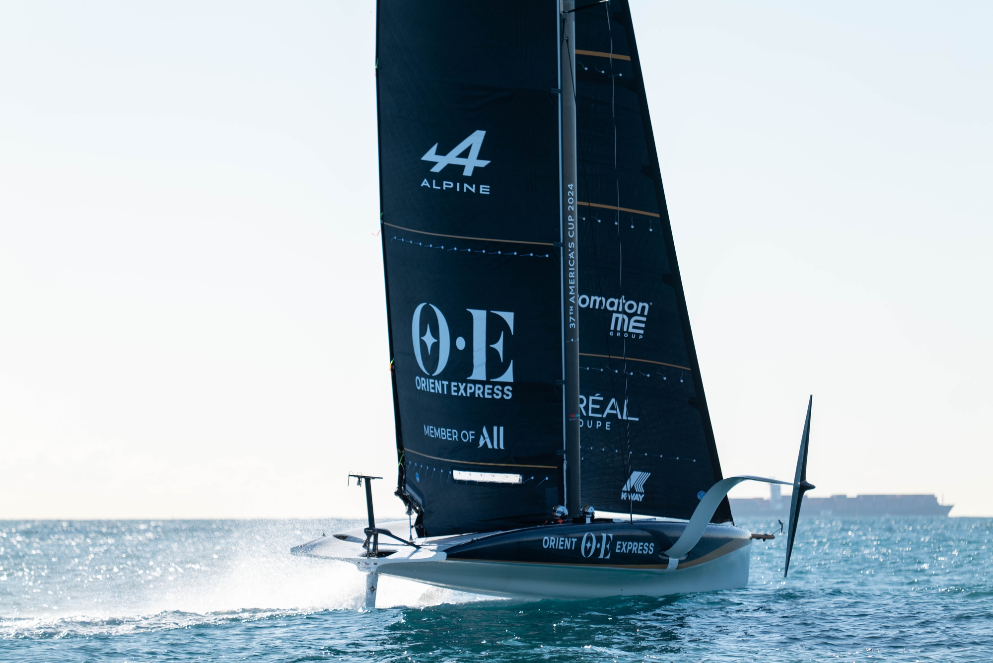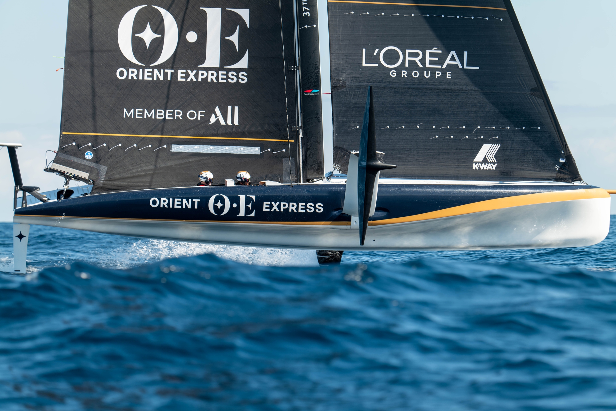 On-Water Recon Report – Orient Express Racing Team: Orient Express Racing Team craned their AC40 to the water at 07:45, that had been left with the mast up and out of the shed overnight. The team docked out at 09.45, forty-five minutes later than planned.