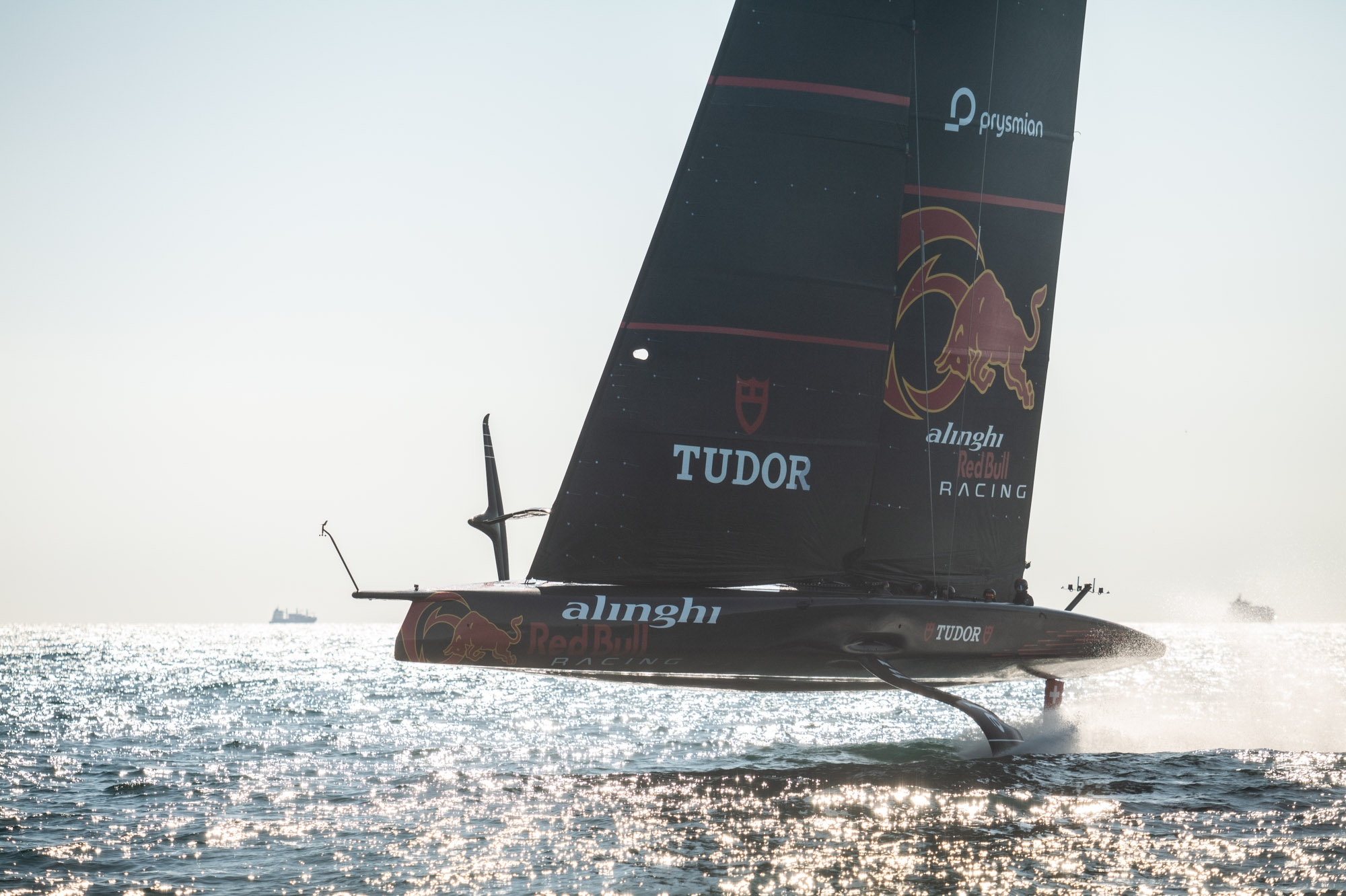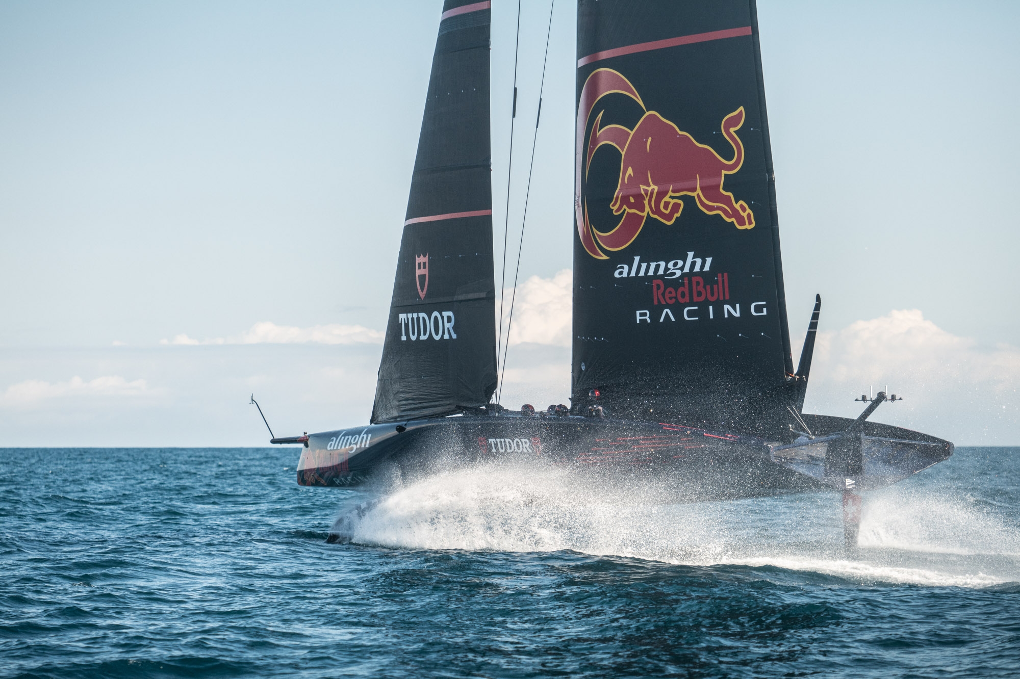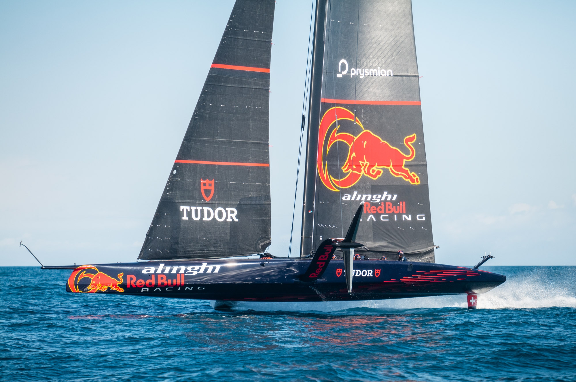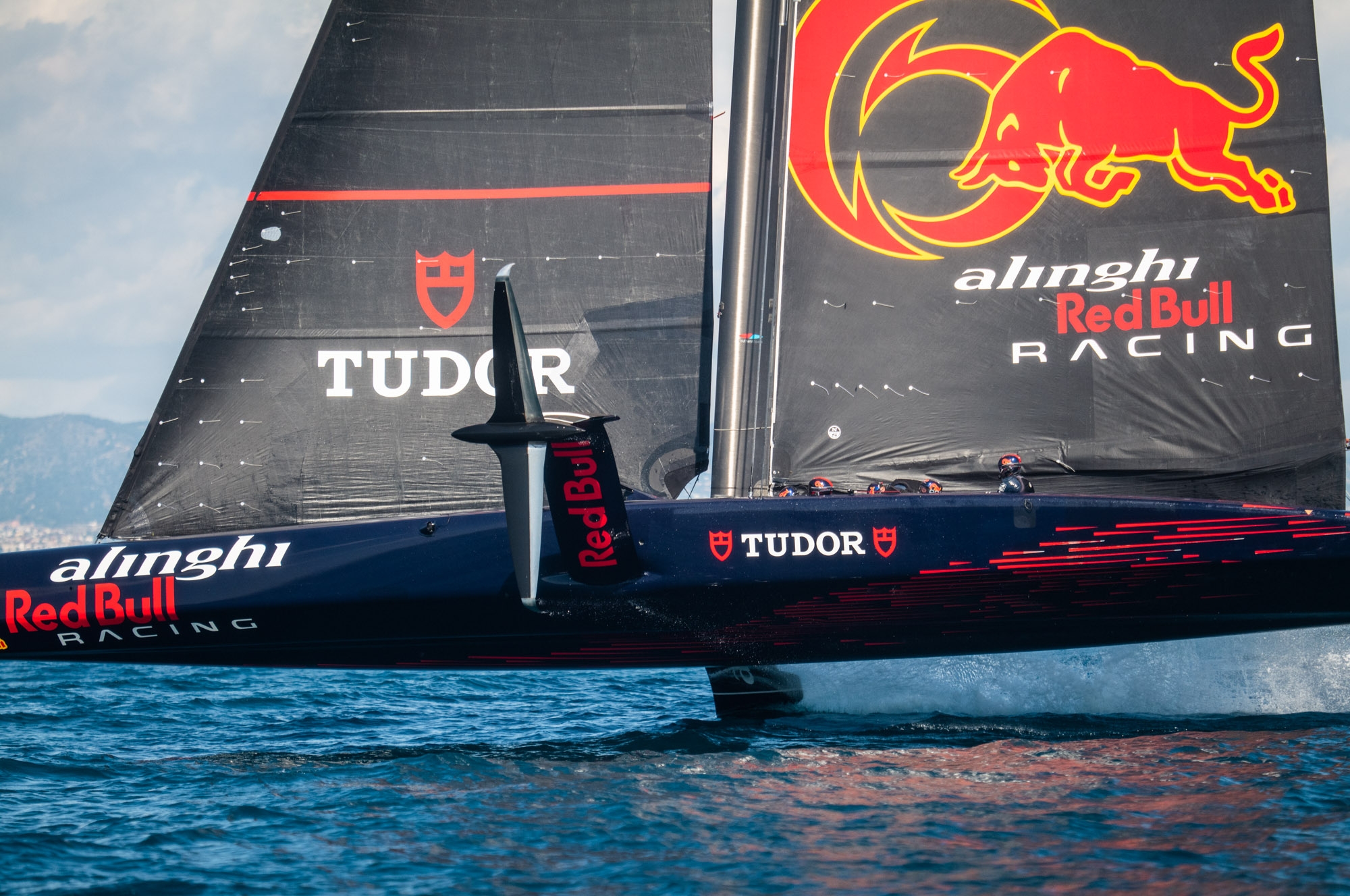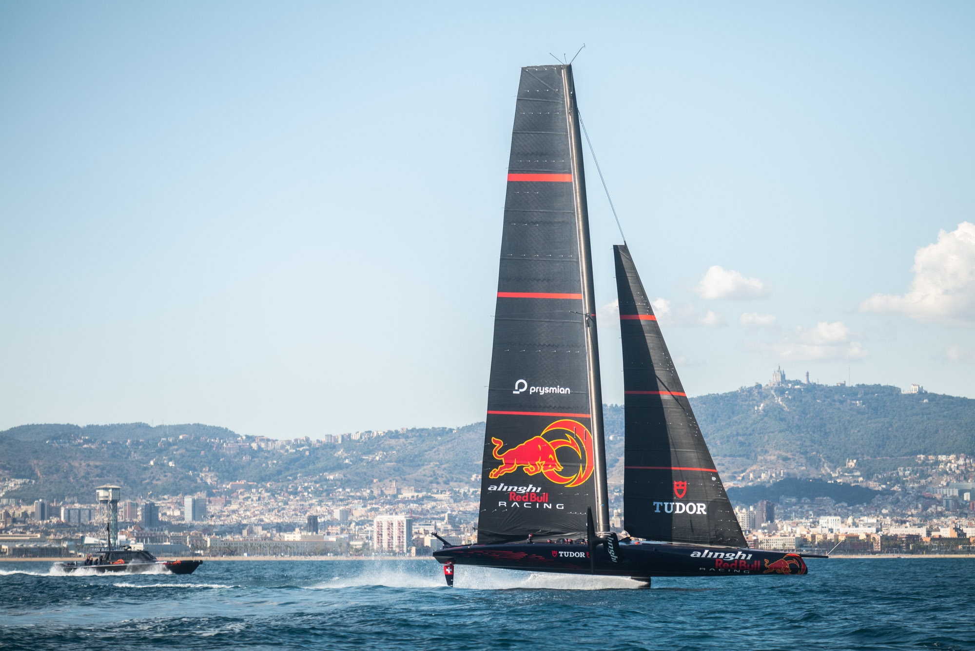 For Alinghi Red Bull Racing, they are red hot already and the snorting, sporting bulls have their tails up at the moment with the arrival of the new AC75 to their fabulous base opposite the Mare Magnum shopping centre right in the heart of the bustling Port Vell. ‘BoatOne’ was delivered by barge and craned onto the dockside before disappearing behind rather solid shutters amidst maximum security for her fit out for a first launch in April. From the sailors’ faces this was a moment and a dawning realisation for everyone else in the Louis Vuitton 37th America’s Cup that the Swiss mean more than business – they are here to win it.