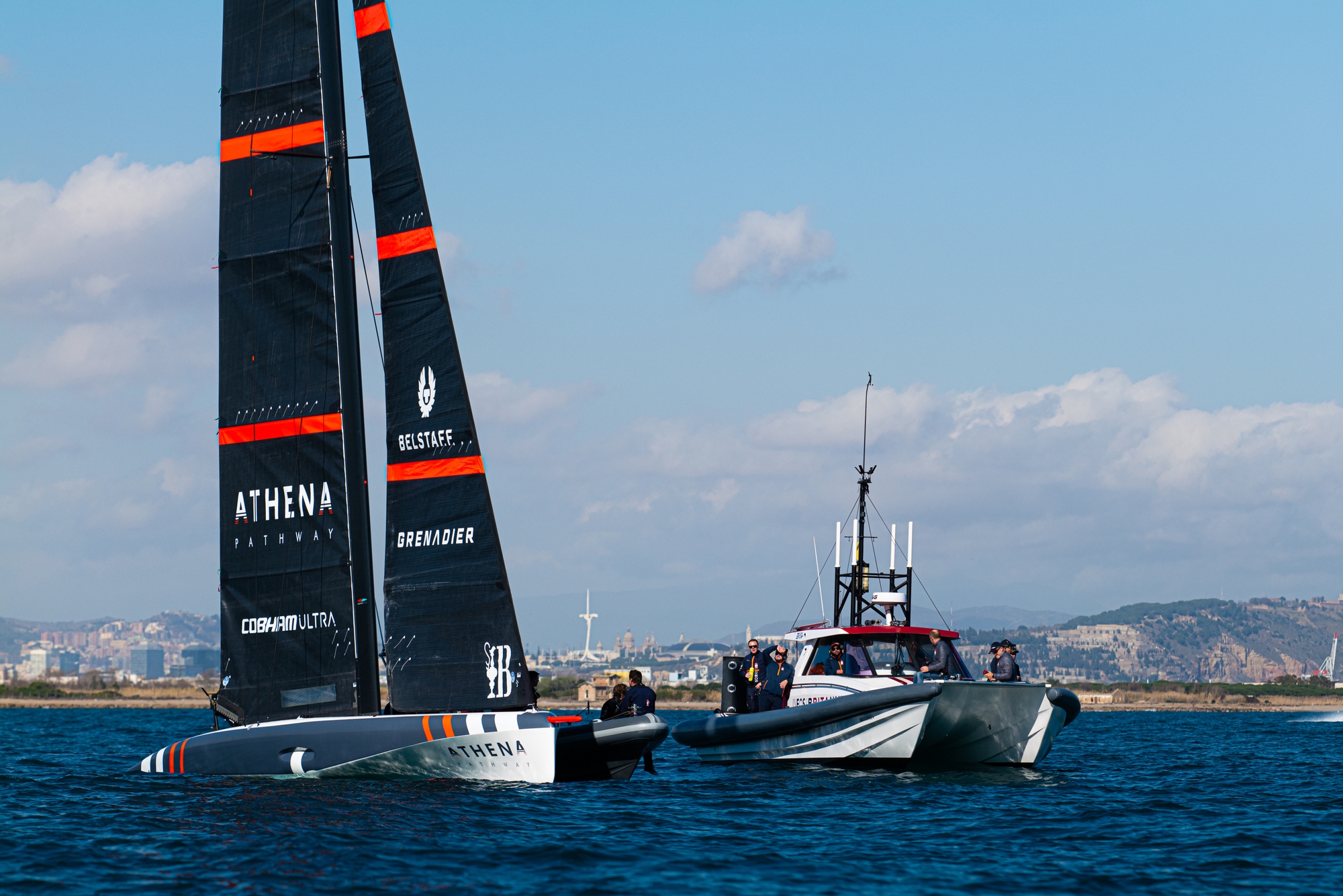 On-Water Recon Report – INEOS Britannia: A lack of breeze in Barcelona prevented the British team from clocking up any meaningful sailing today aboard the British AC40 Sienna. The boat was set up in one design mode for the two-hour session using the one design M1-1 mainsail and J1-2 headsail. After launching at 1103 and docking out at 1233 the boat left the harbour at 1400 and was put straight on to a bow tow in sub 6 knots of breeze. After coming off the tow and foiling under its own momentum for a couple of minutes on starboard tack the boat abruptly fell off the foil and stopped. A subsequent tow up resulted in 8 minutes of flight time and included one foiling tack before the wind faded and the boat dropped gracefully into displacement mode. After that, despite towing for 20 minutes over to the stretch of water adjacent to Barcelona airport, the breeze failed to register more than brief 7 knot puffs. Time was called at 1535 with the boat towed back to the harbour for a 1615 dock-in. No recon is required before Monday March 11 at the earliest.