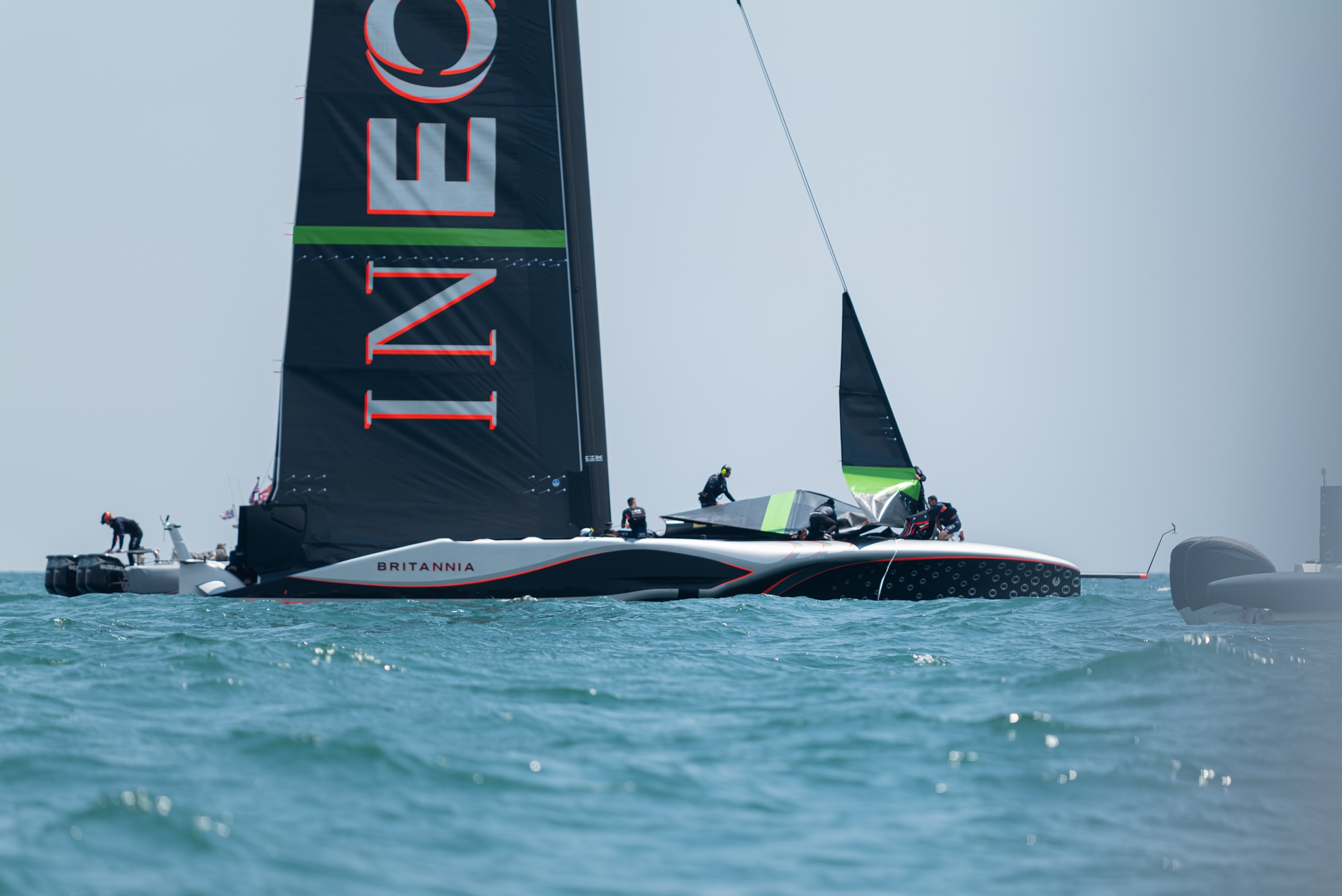 It was a long day on the water, a precursor for what is surely to come, as the British work up this fascinating platform to what they are hoping is a world-beater. Technical and tweaky, what’s going on downstairs with INEOS Britannia is what the rest of the teams in the Louis Vuitton 37th America’s Cup are all asking as with Mercedes Applied Science on their side, they are sure to be innovating.