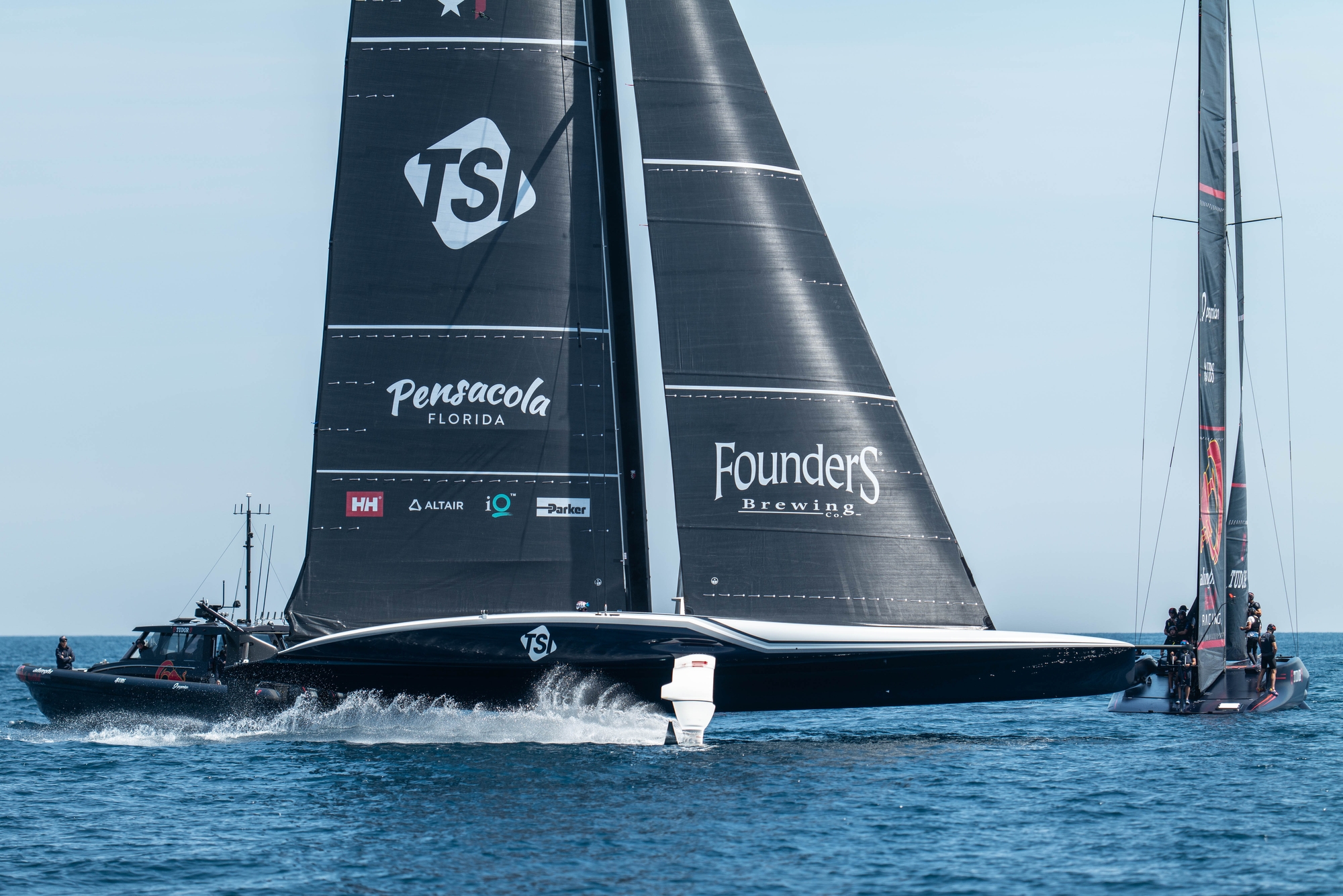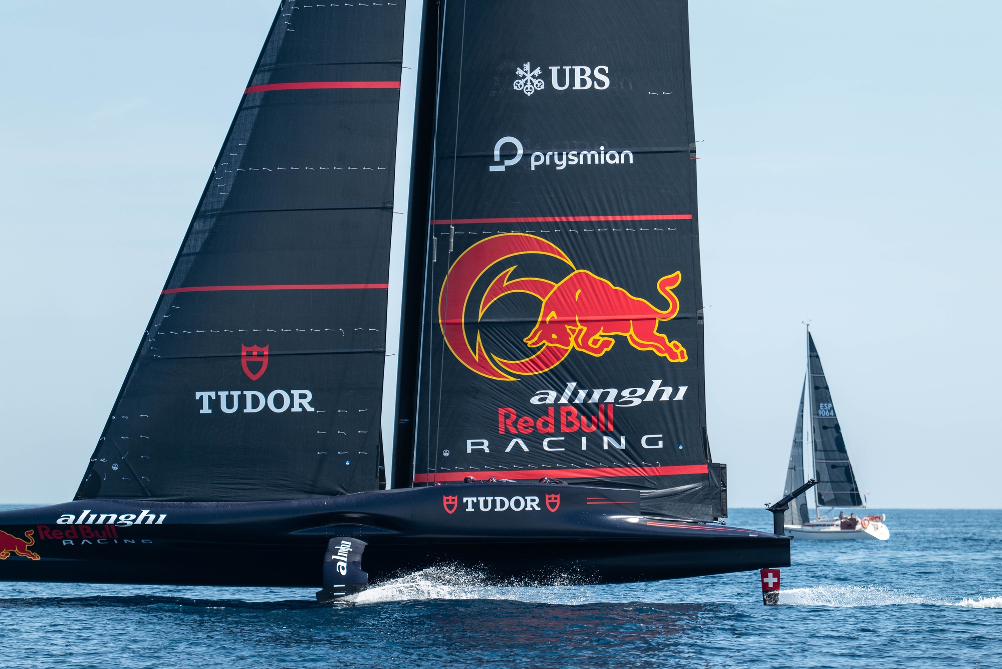 On-Water Recon Report – Alinghi Red Bull Racing: The Swiss team rolled out their AC75 at 10:30 after a thirty-minute delay. New versions ‘E’ of both foil wings were declared over the weekend, plus an only new version ‘B’ of one of the foil flaps. In relation to this, new wing tips on the inner sides of the port and starboard side wings were identified, which seem to be symmetric to those on the outer sides. On the other hand, the white hardware equipment positioned on the aft part of the deck which was described the past week, seems to probably be part of a Starlink hardware kit aimed to improve connectivity.