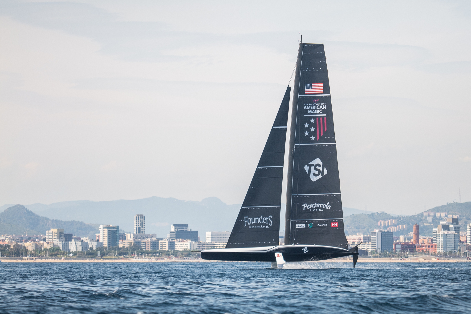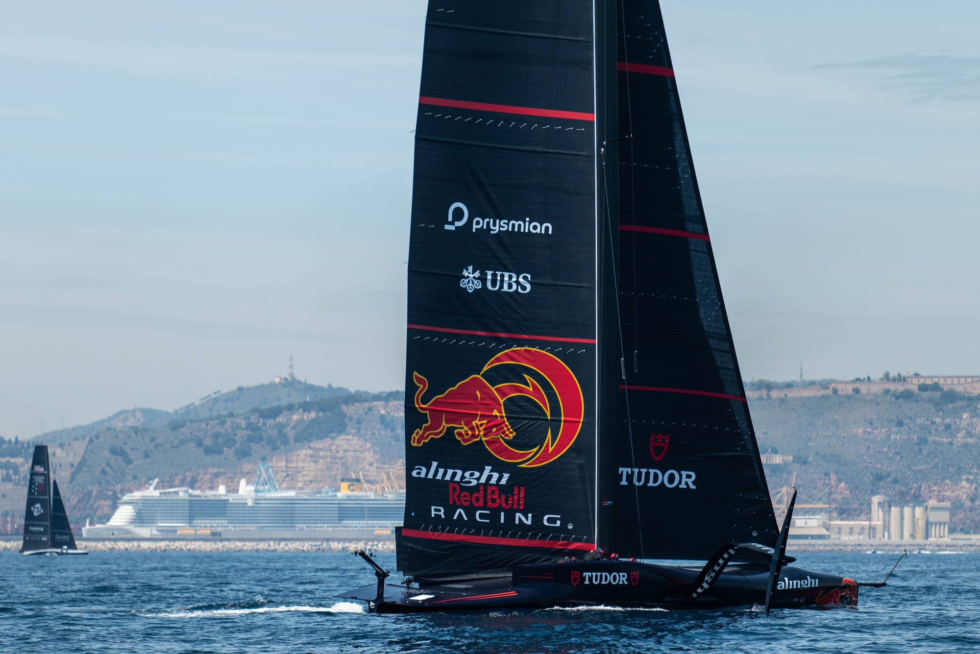 It was ‘one of those days’ in Barcelona where the tightrope was walked between a potentially building breeze from the east to cool the city as so often happens or a complete shut-down. Sadly today, the latter prevailed with the anemometer barely rising above 6 knots all afternoon for Alinghi Red Bull Racing and NYYC American Magic, the two new-gen AC75s both hoping to kick off the week’s training in style and continue their positive momentum.