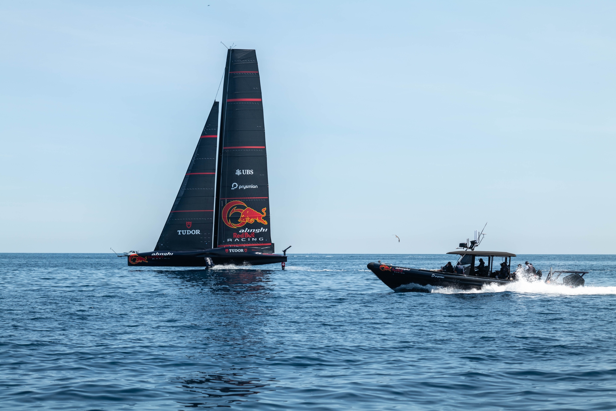 After towing around looking for wind, Alinghi Red Bull Racing decided to head back to the base at 15:45. Once inside the harbour, sails got lowered, and the team docked at 16:05. A good show of perseverance from the team trying to test performance in bottom-end wind conditions. Sebastian Peri Brusa – Recon on Alinghi Red Bull Racing