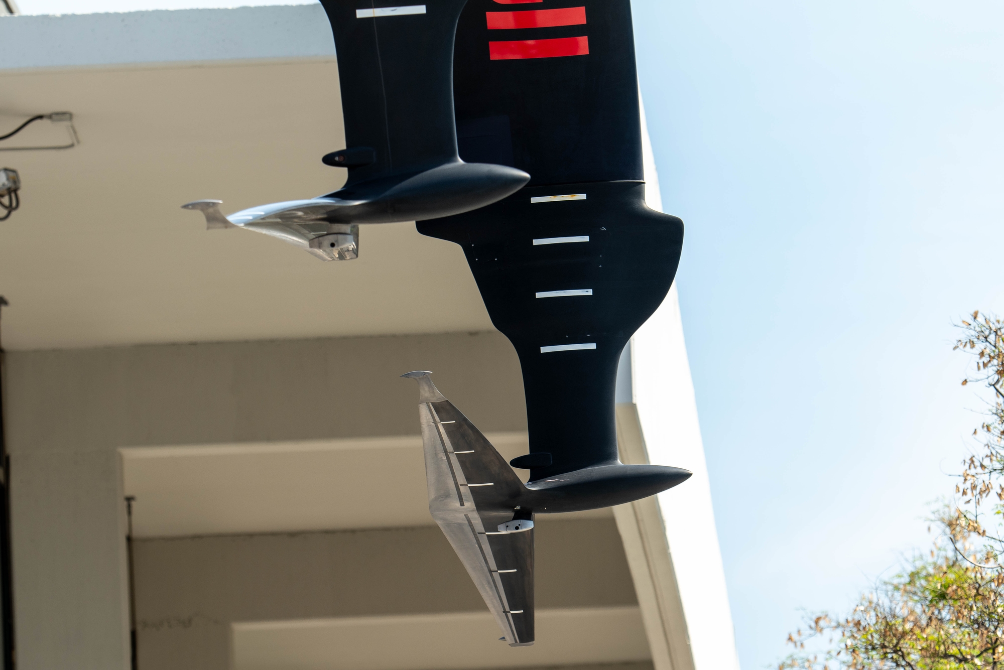 Today Patriot unveiled some upgraded detailing on the foils with what the recon team described as: “four spray rails of different lengths along the port foil arm stock starting from the leading edge, and one spray rail on the starboard foil arm stock below the skeg from the leading edge to trailing edge.”