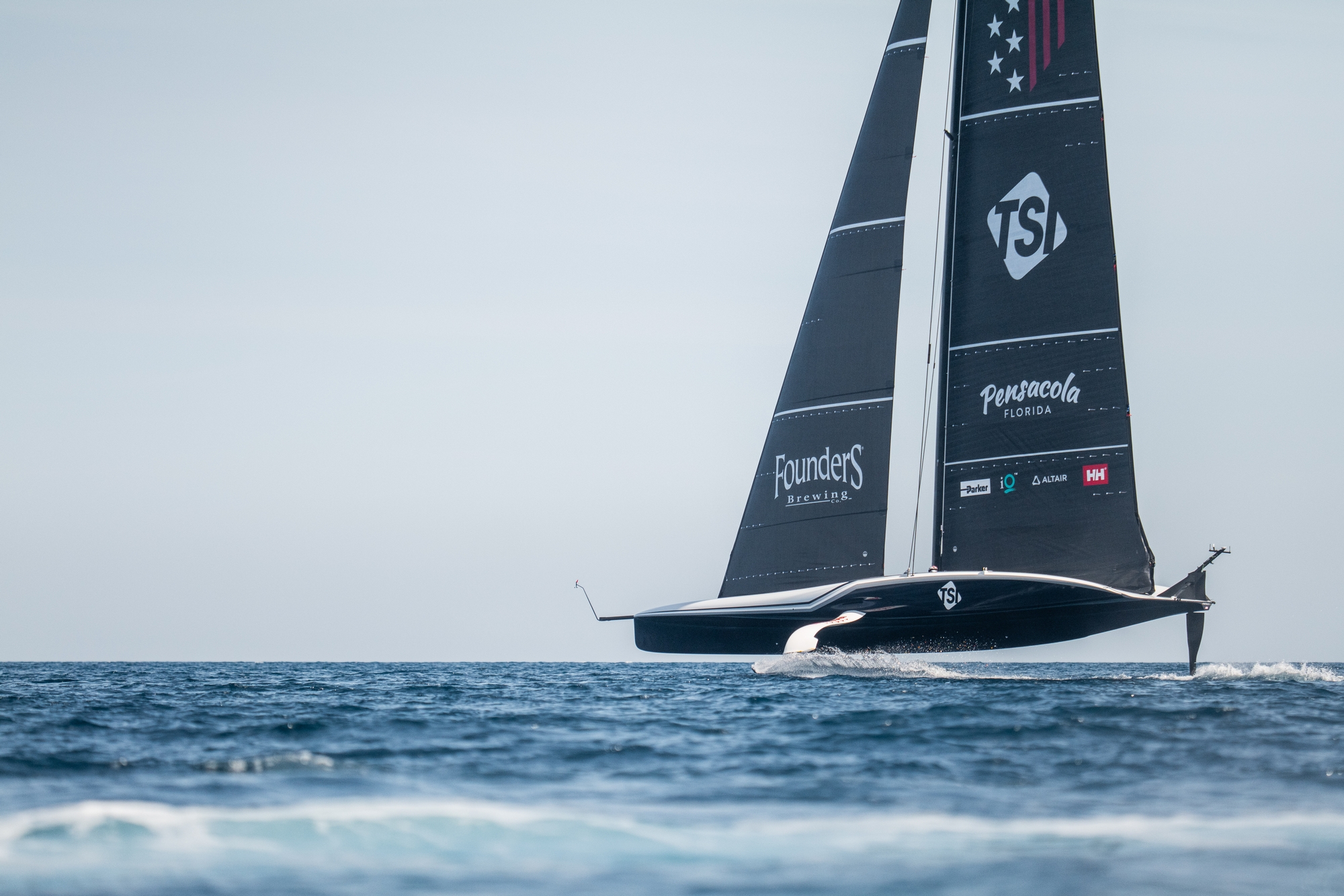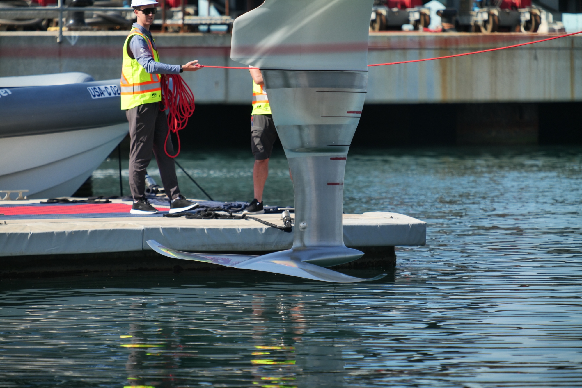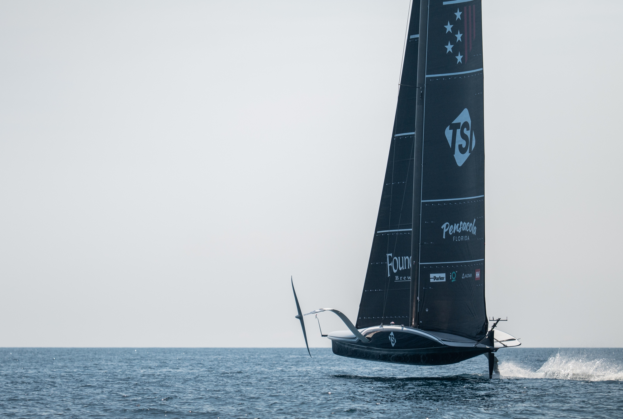 The team docked out at 12:30 and hoisted the MN2-1 mainsail and J2-1 jib at the port entrance, with less than 5 knots measured on the anemometer at the harbour entrance. Patriot was sailed on a reach in attempt to take-off but to no avail, prompting the team to exchange the J2 for the J1-1 jib. This marks the first time this J1 was hoisted. After some time, the yacht managed to take-off at 90deg TWA, at approximately 18kn boat speed under six knots of wind. A foiling tack was attempted but the yacht touched down mid manoeuvre, as the tech crew jumped on board to focus on the jib system.