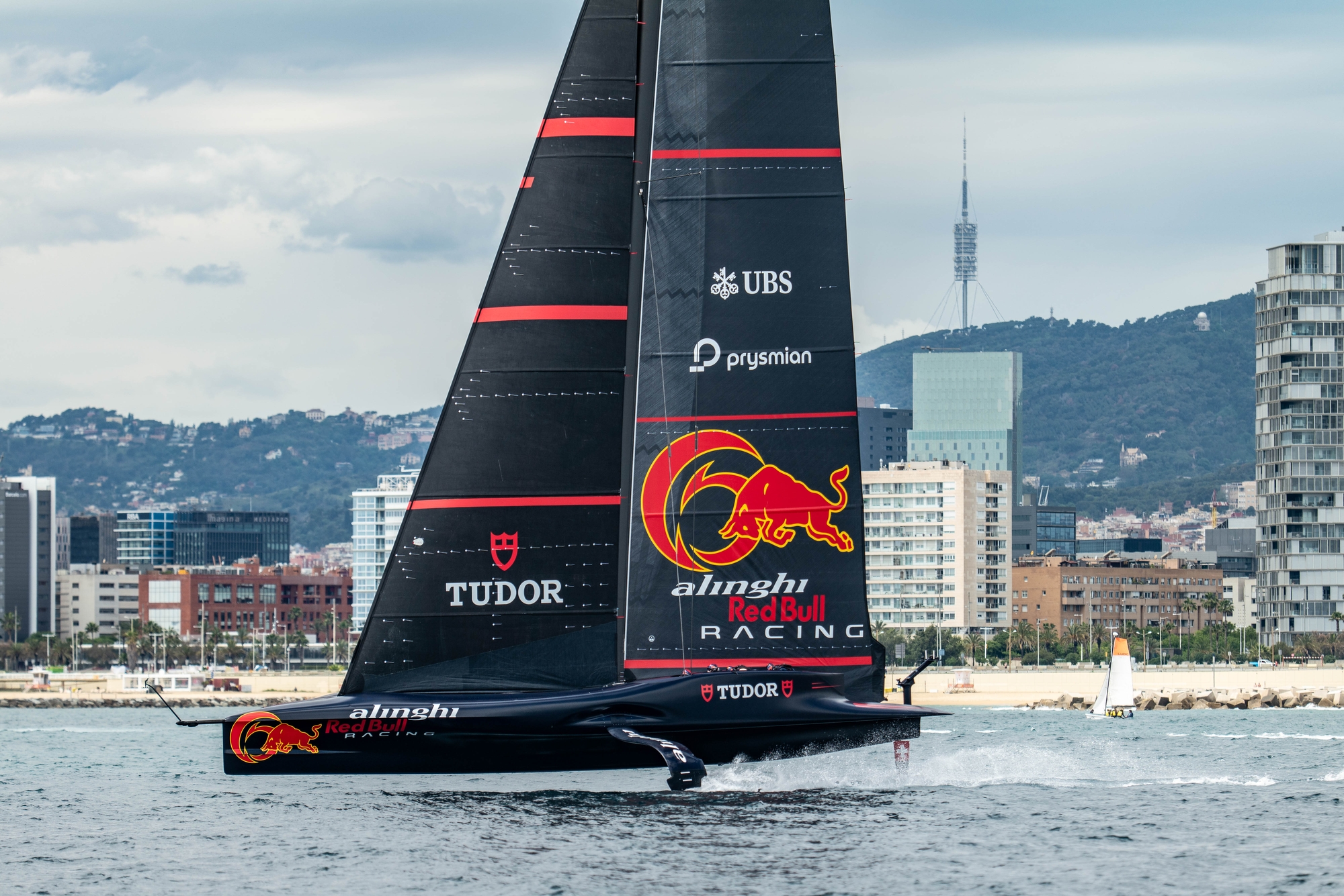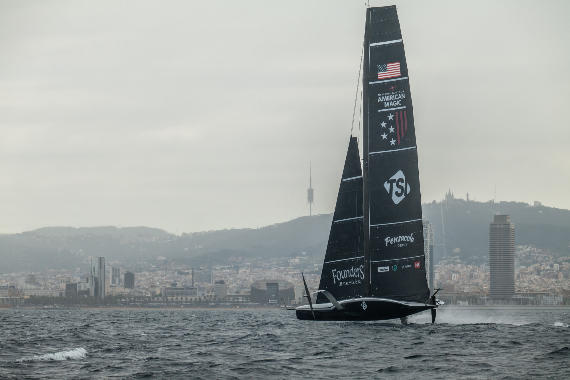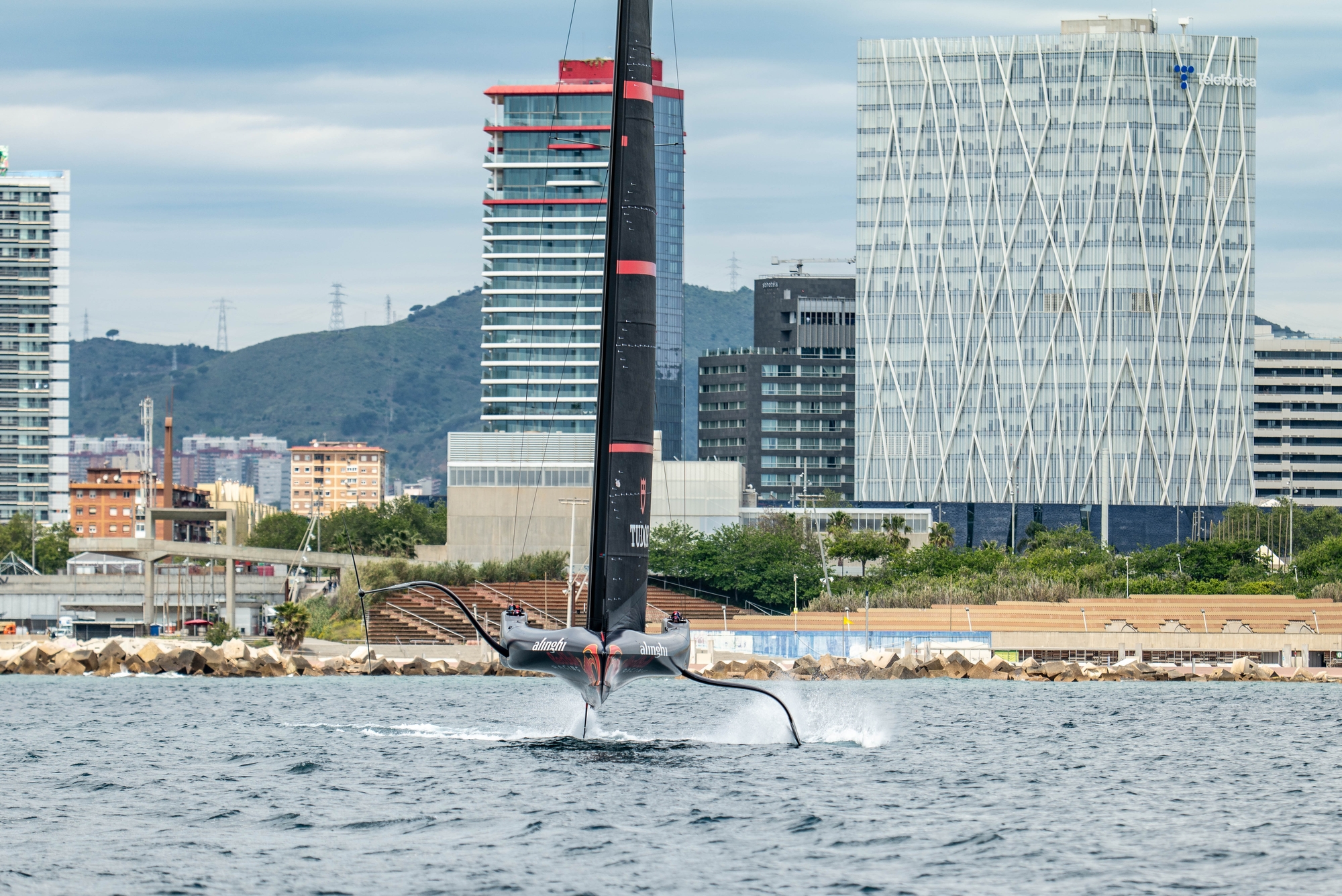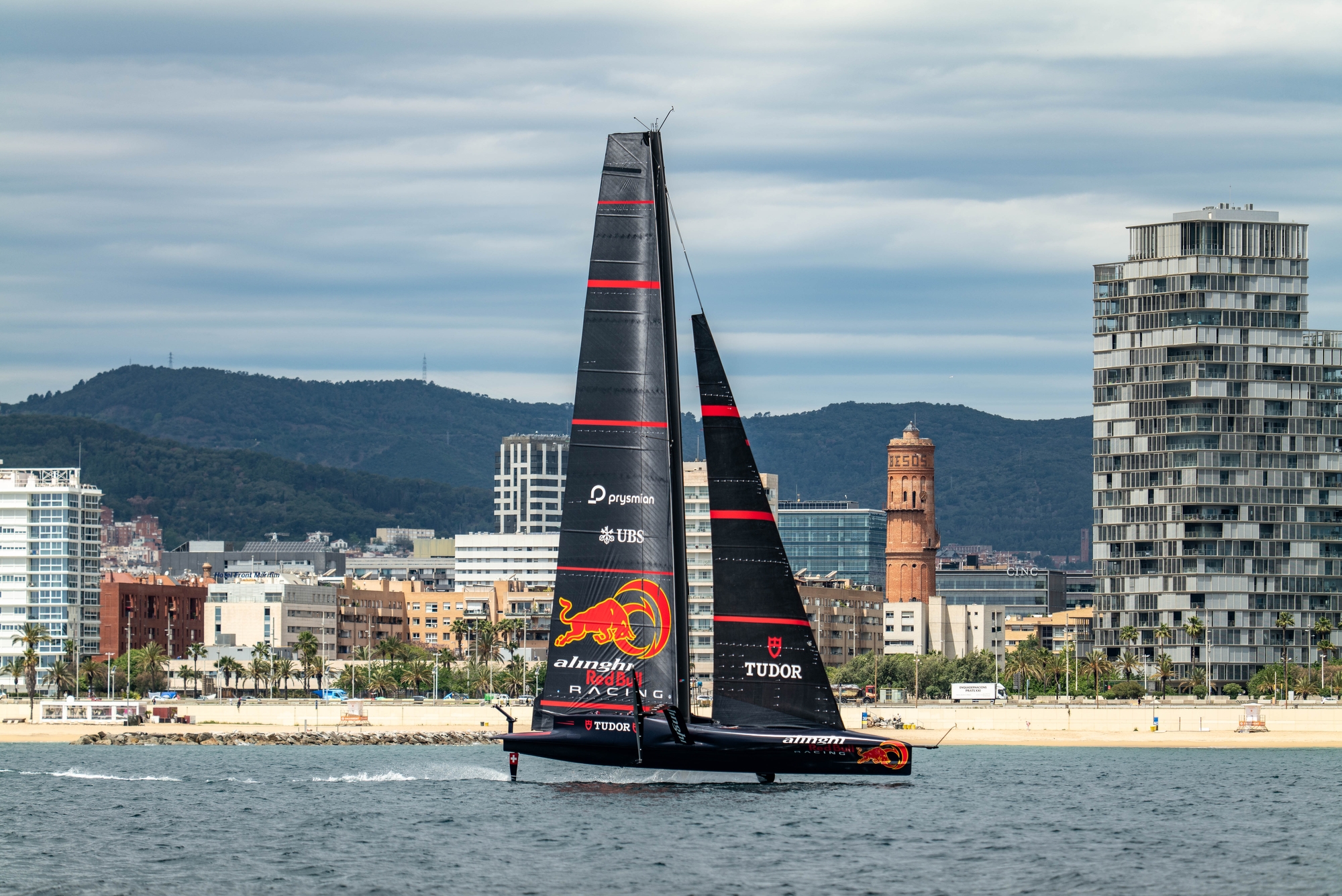 After a rain-lashing yesterday, Wednesday in Barcelona was a very different prospect although for Alinghi Red Bull Racing, NYYC American Magic, Orient Express Racing Team, and Athena Pathway, they all had to be patient and choose their sailing areas carefully. The persistent and slow-moving Atlantic high that is gradually filtering in with wide isobars is the transition to summer that the locals talk about with Barcelona capable of serving up rain, wind, and then flat calms – all in a few minutes.