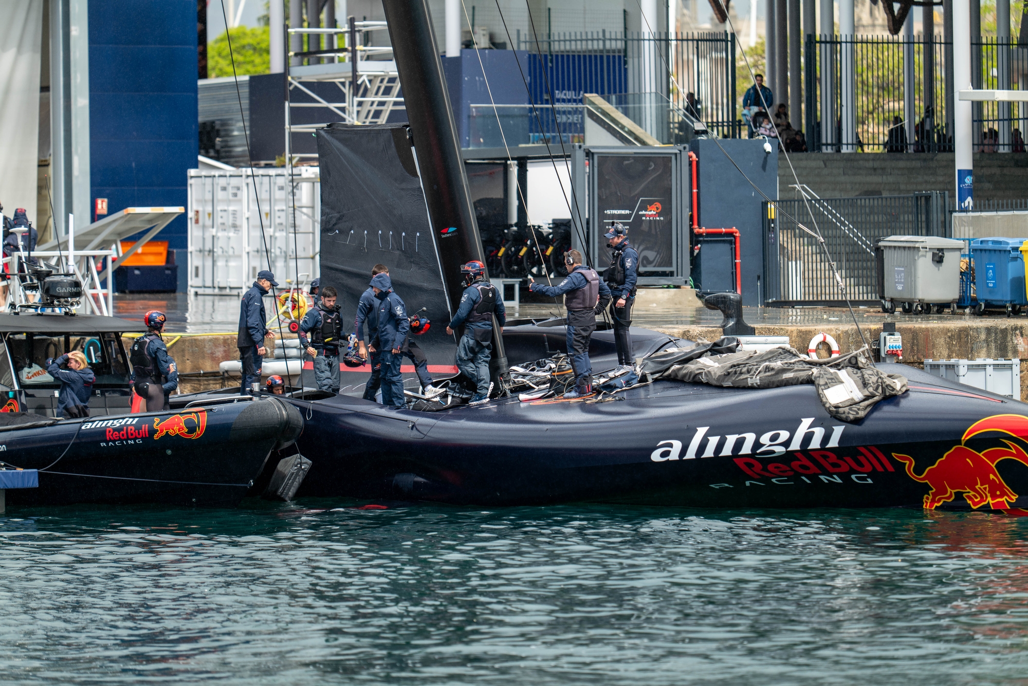 Sails got lowered at 16:00 outside the port, and the AC75 reached the base on the tow, docking at 16:35. Twenty-five minutes after it was craned out of the water indicating the end of the day. Sebastian Peri Brusa – Recon on Alinghi Red Bull Racing