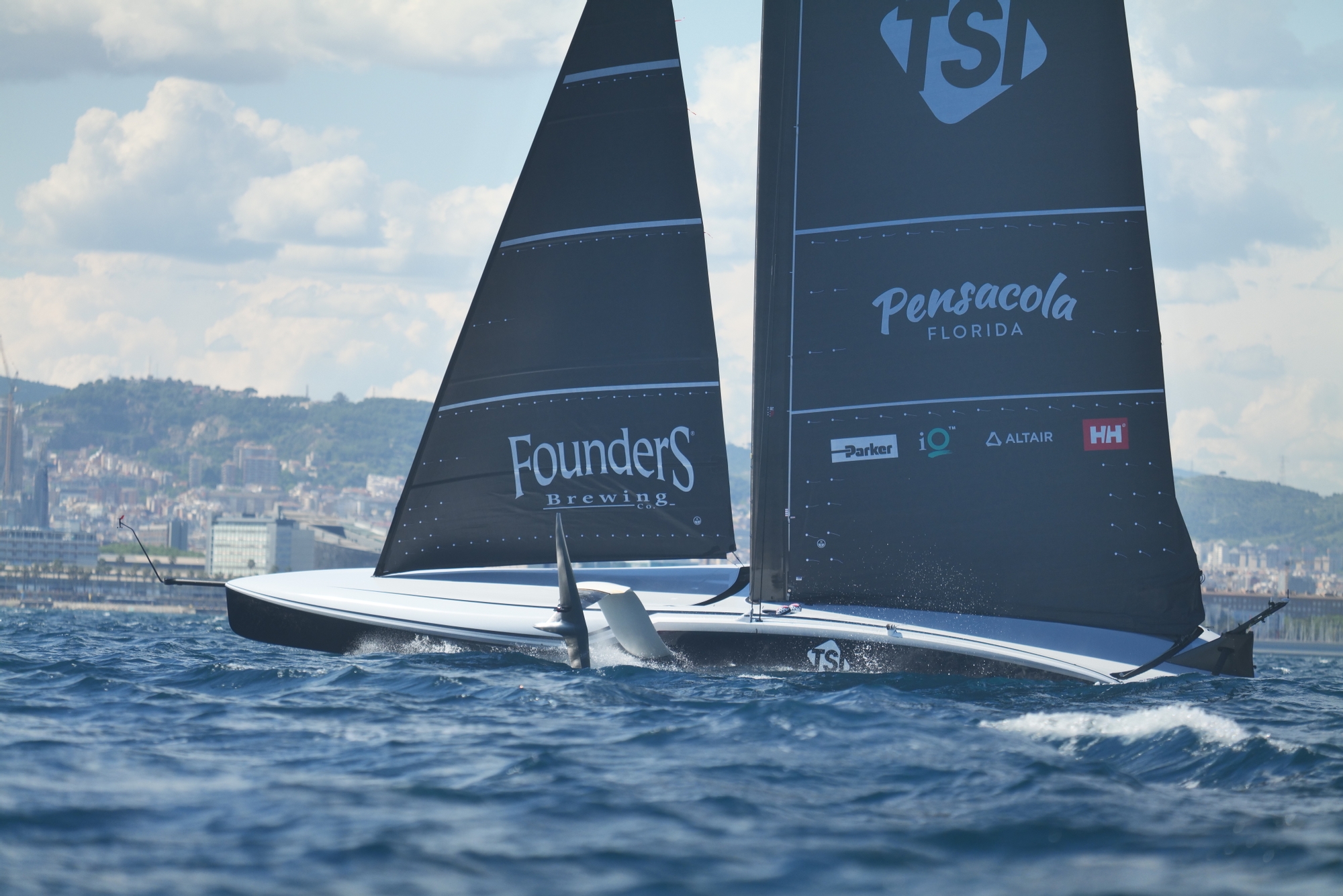 The team docked out at 13:30, hoisting the MN2-1 mainsail (tell tales added at the head, tack and clew) and the J3-1 jib. The team started sailing at 14:15, with a long downwind to Badalona, mostly sailing on starboard tack keeping their port foil with cameras in the water. The J3 was replaced with the J4-1 (new version updated in component declaration), before sailing a long upwind on starboard. Techs then jumped in the helm and trimmer pods as a battery change was carried out.