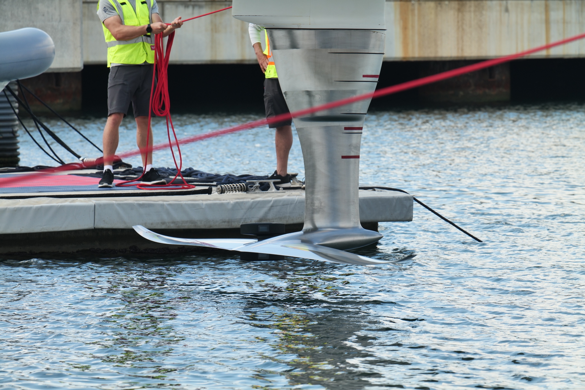 And speaking about the new rudder, Anderson added: “It's slightly different from the previous rudder, a little bit different shape to it on the vertical and a little bit of a different shape on the elevator, just the progression of our design path there...I think when everybody starts to look at sailing in the sea state here you know you want to make sure that you have enough water immersion to be able to accommodate bigger waves in Barcelona than what we saw last time in Auckland, that's just one of the puzzles that everybody is trying to solve...I don't believe that this is our final rudder, pretty sure we're going to have at least something else coming out at some stage, but I don't know exactly when.”