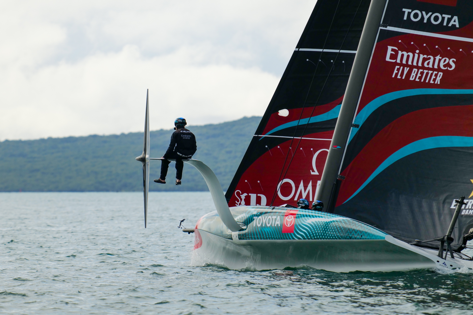 The American team have been relentlessly playing with rails on their foils and Paul explained more, saying: “I think it's just about reducing the drag of the spray on the foil. And the reason we have so many that we've changed around is just to get a better feel for which ones we’re using more, which ones we use upwind, which ones we use downwind. You see today like the sea state was quite big compared to previous days, so you just get a feel how much they’re going in and out of the water and really just seeing which ones you think are working the best...I think you'd be lying if you could feel the difference, but I think it's more visual, just seeing what's going off and again looking at the cameras afterwards seeing where you're spending most of the time on the foil.”