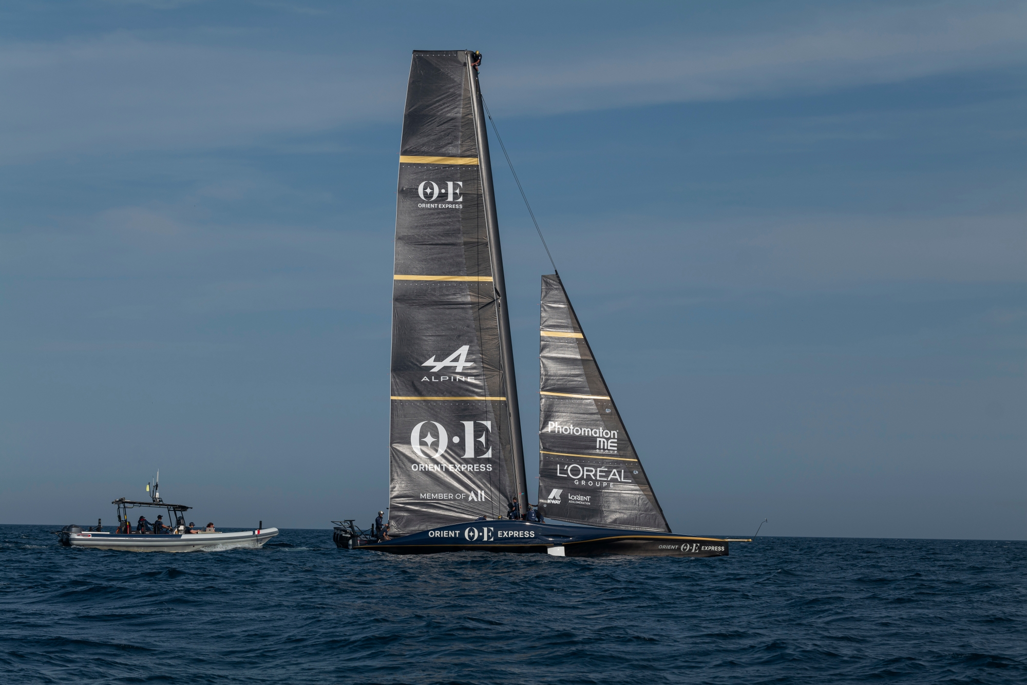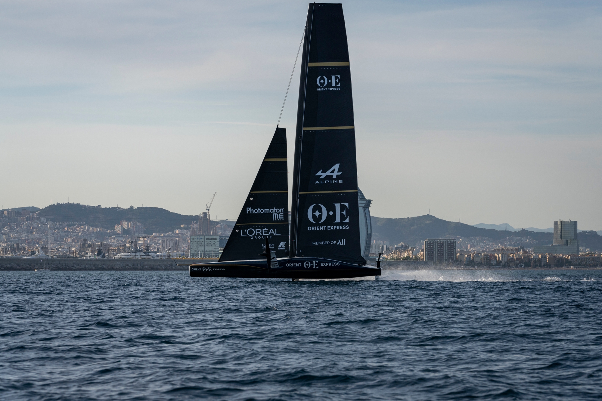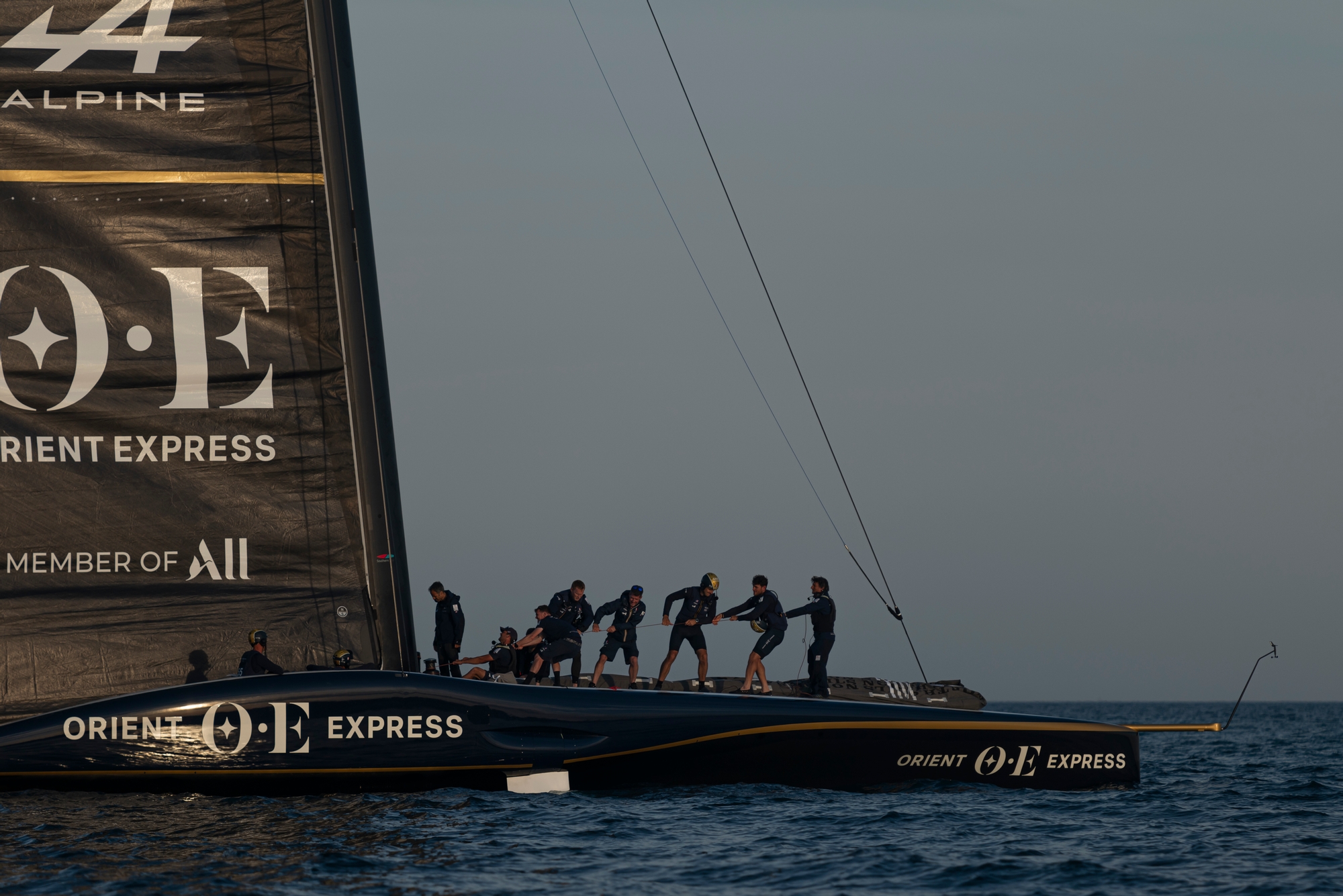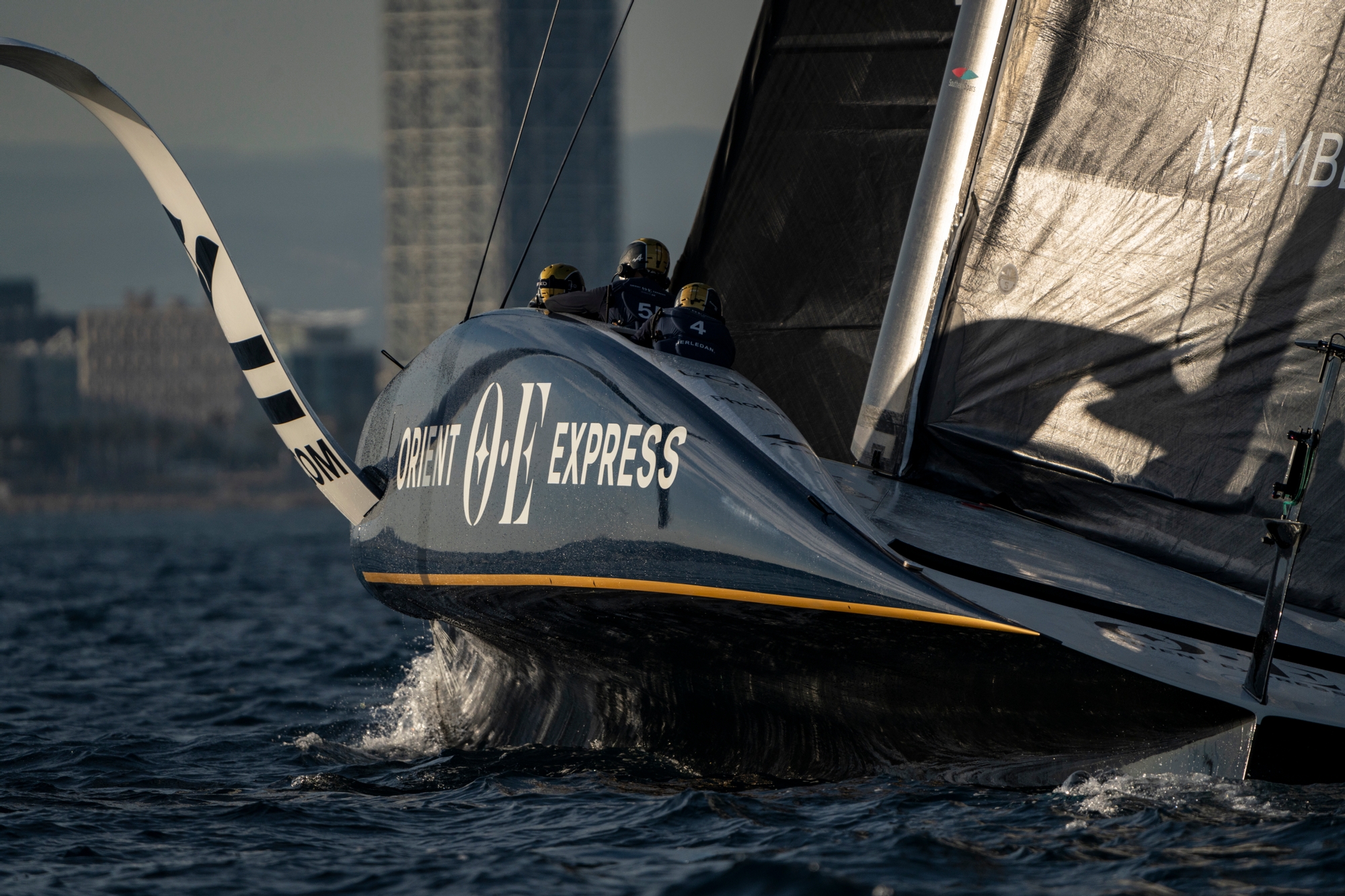 Persistence and tenacity were the order of the day for Orient Express Racing Team on Thursday who were eventually rewarded by an early evening flight that radically step-changed their whole challenge for the Louis Vuitton 37th America’s Cup. It was a long day, dogged by technical issues that every boat has on a maiden voyage, but they stuck to the task and got the job done, eventually docking-in as the sun disappeared over the Montjuic mountains with smiles broader than the Champs Elysee.