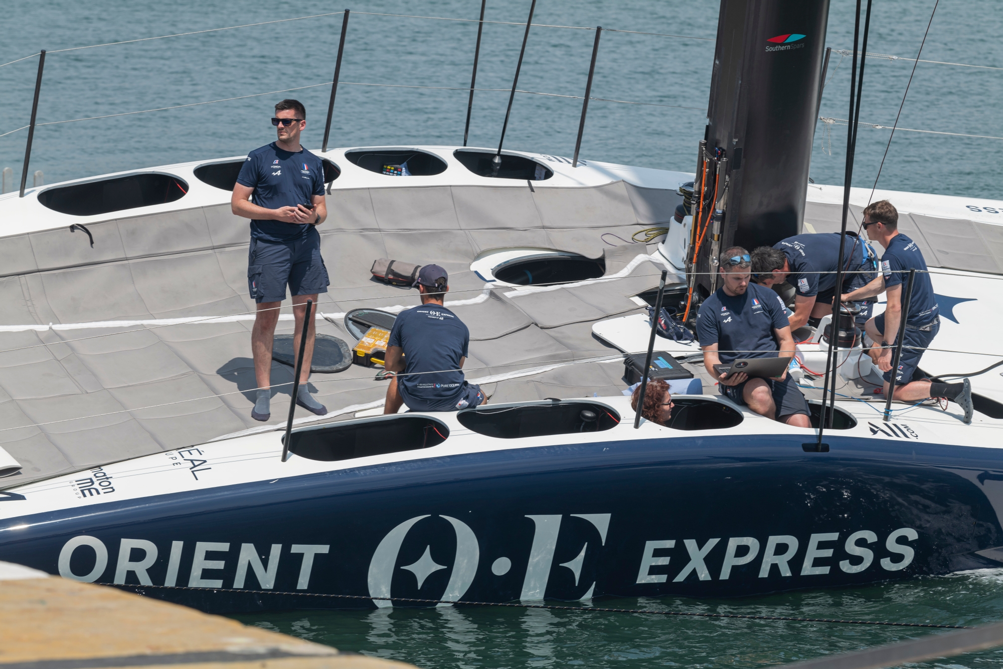 Long day, great day. Orient Express Racing Team now have a hectic schedule through the rest of June as they continue commissioning the AC75 and start to push it harder to race pace. The dark horse of the Louis Vuitton 37th America’s Cup is off and running. (Magnus Wheatley)