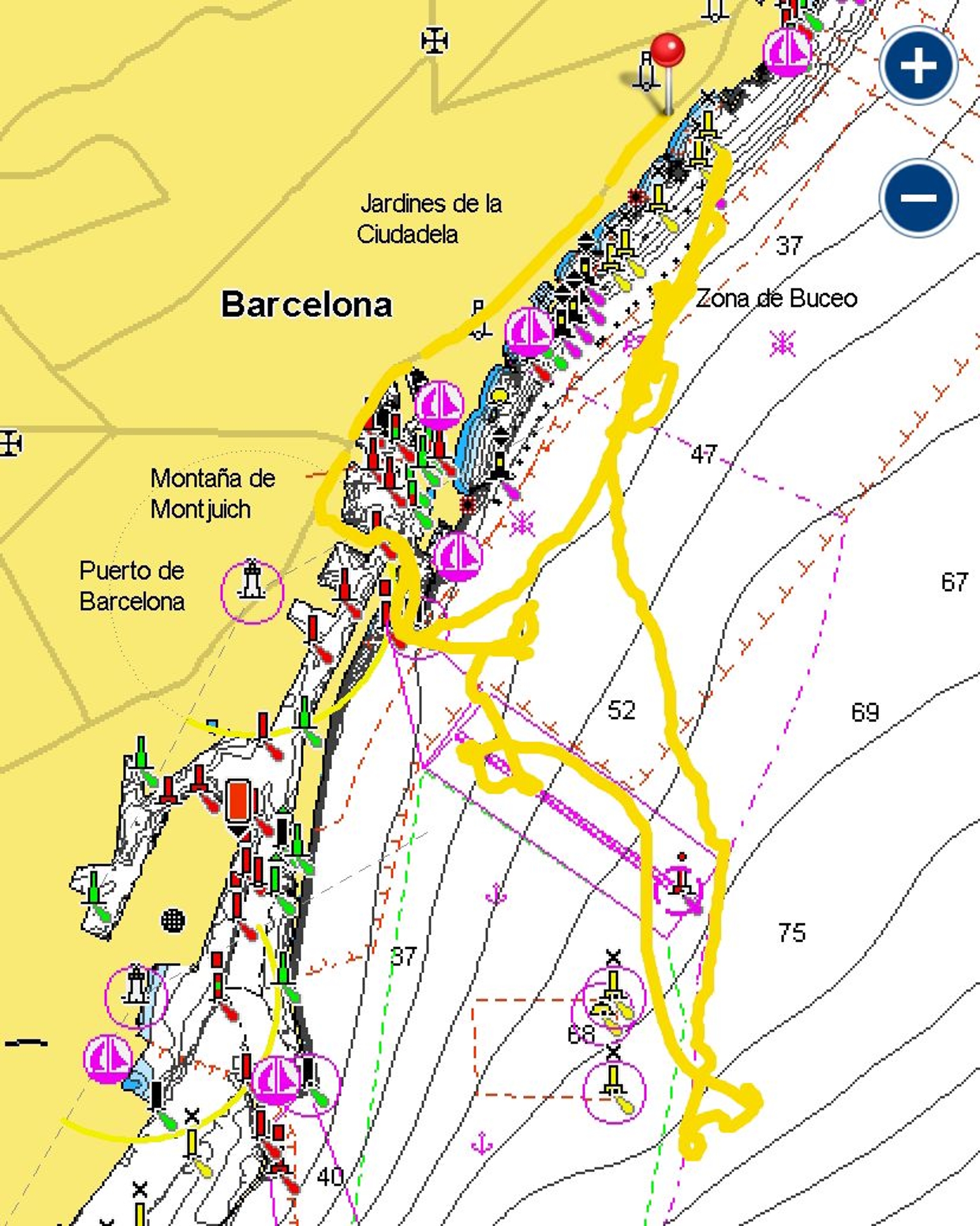 Finally, at 16:00 they managed to dock-out and then the French AC75 was towed out from the harbour by one of the chase boats. A wind of about 11-14 knots TWD 200° greeted them and once out the harbour they encountered another issue and held the sail hoist under tow until near the Port Olímpic.