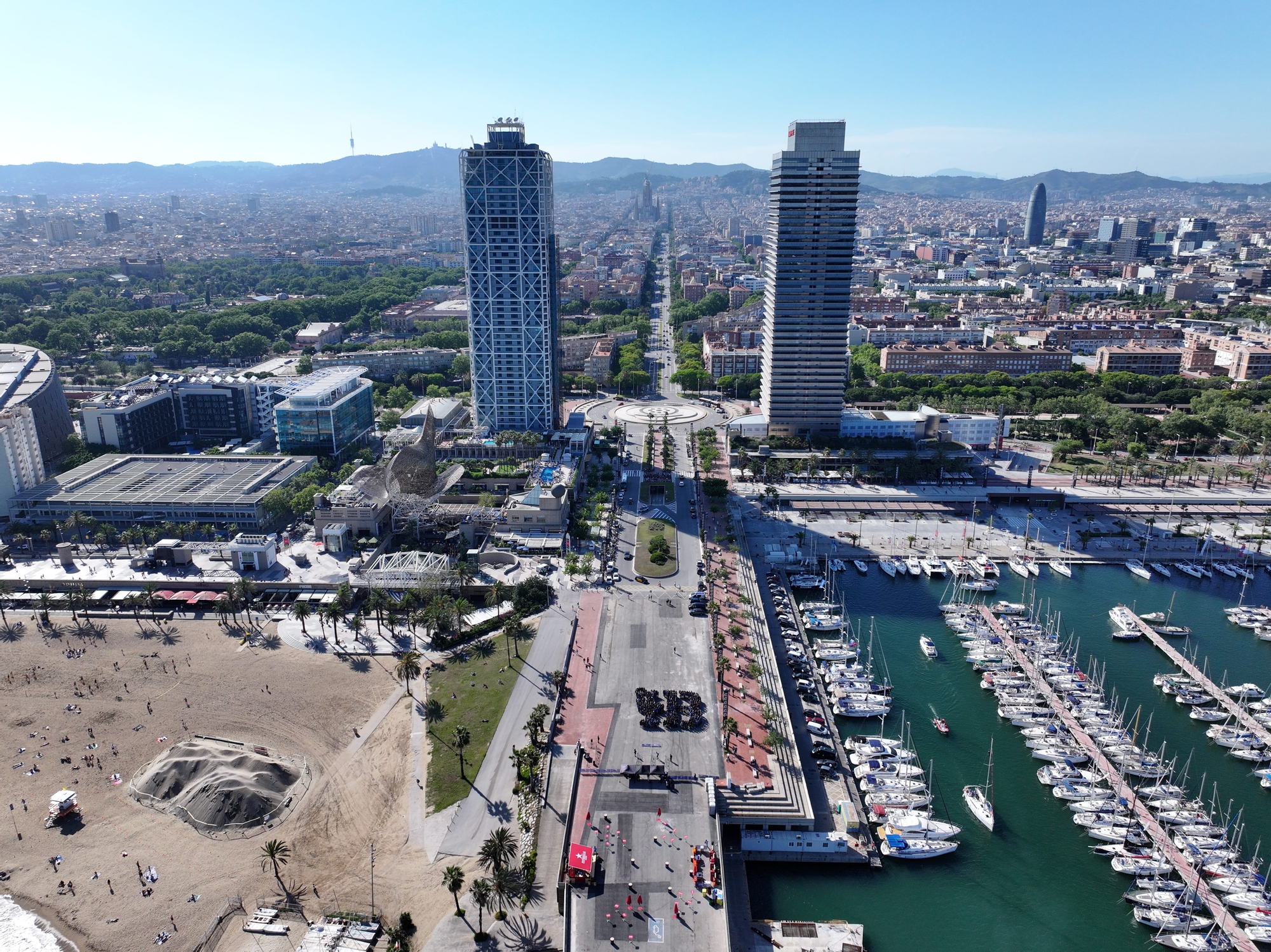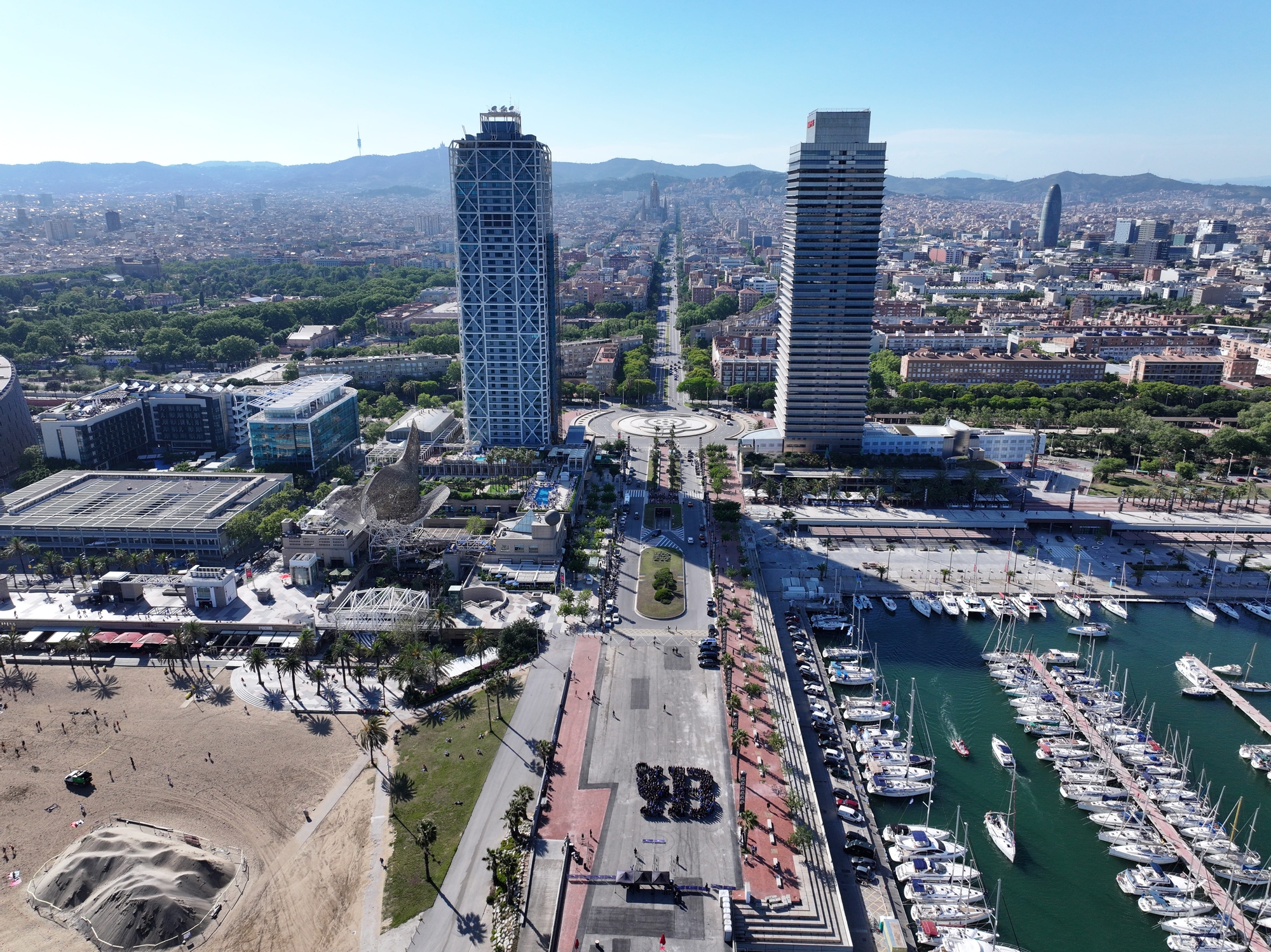 The Mayor of Barcelona and Grant Dalton, CEO of America’s Cup Events (ACE) witnessed an incredible ‘human logo’ of the Louis Vuitton 37th America’s Cup that symbolised the huge effort by so many people in organising what is sure to be one of the most memorable regattas in the event’s 173-year history.