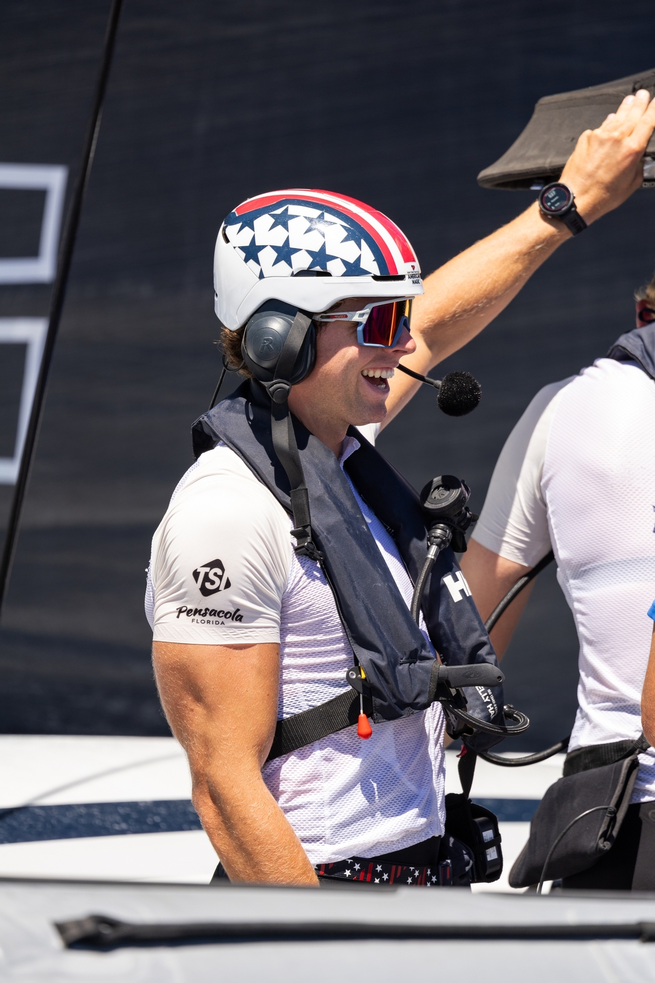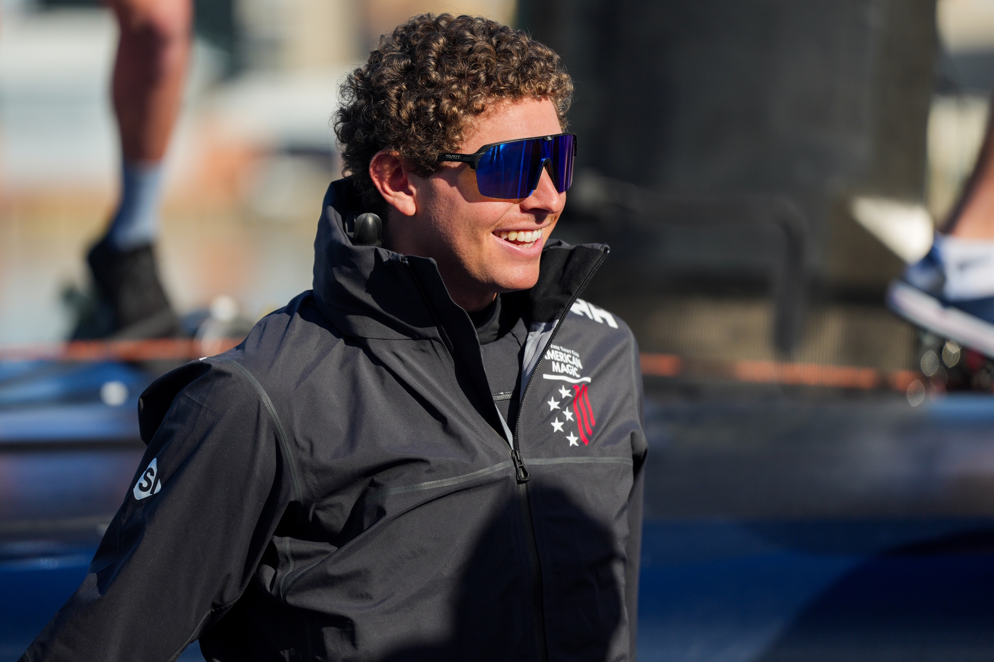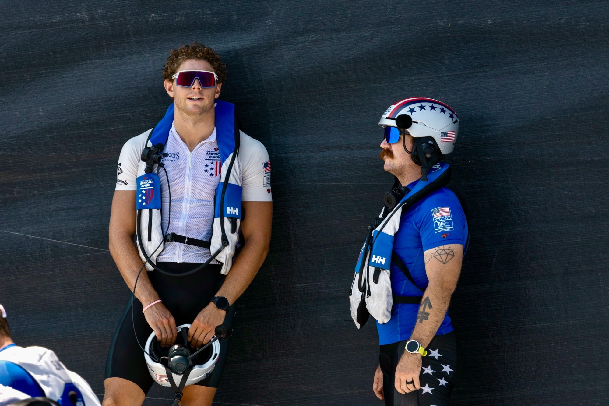One of the most talked about design features of the Louis Vuitton 37th America’s Cup is the innovation of recumbent cyclors brought in by NYYC American Magic. Where the other teams have gone for a more traditional set-up, the Magicians thought outside of the box, weighing up aero considerations with those of outright power output. It’s a debate that will rumble through the summer of sailing in Barcelona but it’s interesting to catch up with one of the team’s recumbent cyclors, Colton Hall, who now has a view directly off the transom of their AC75 ‘Patriot.’