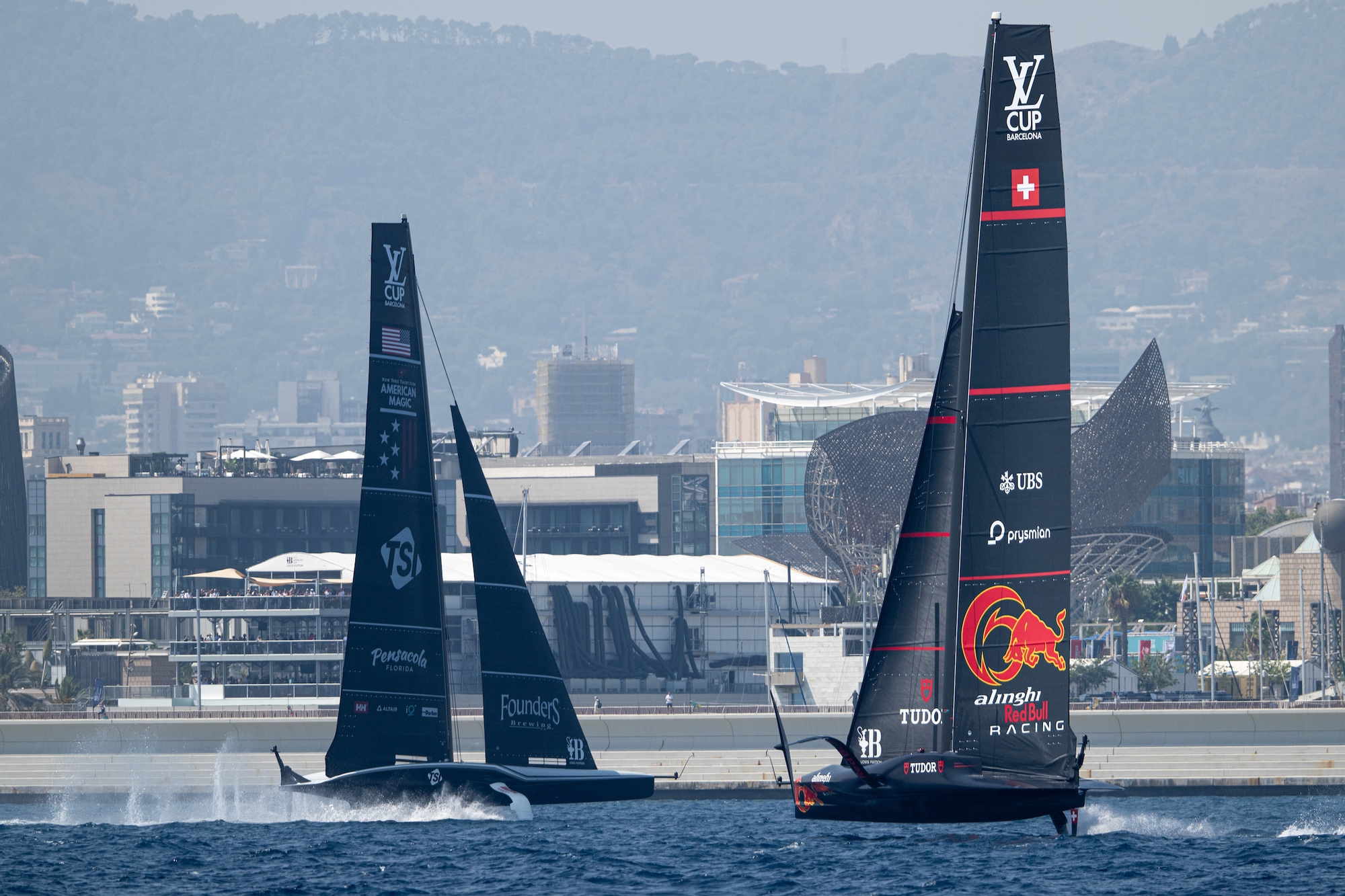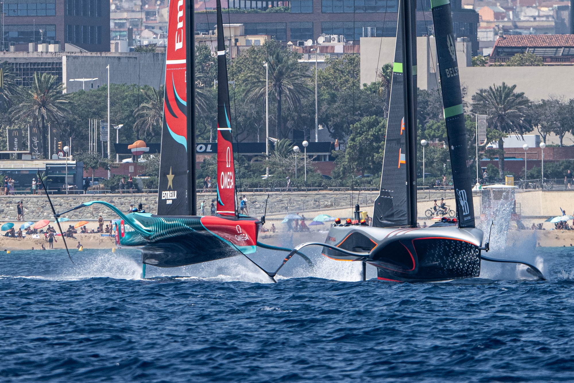 Barcelona, once again, put on its finest display today on day two of the Louis Vuitton Preliminary Regatta with outstanding sailing conditions for the sailors and wonderful viewing opportunities for the spectators. All along the Barceloneta beachfront and at the free-to-enter Official Race Village and Fanzones, the crowds were out in force for a spectacle of high-octane racing at its very best.