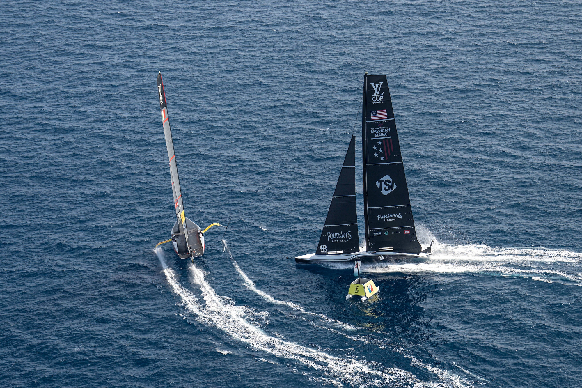 Arnaud Psarofaghis, skipper of Alinghi Red Bull Racing, was sanguine about their first loss of the regatta and saw the positives in defeat, saying: “It was a really interesting race in all aspects. We just misjudged the start, came back a little late to push American Magic but they nailed it really nicely, from there the race was won and they really locked the game down, and so we just tried to sail our boat well and try to get as much data as possible to see what we can improve for tomorrow and mainly for next week. But really positive day for us, massive learning and I mean we didn't win the race, but we learned a lot of stuff.”