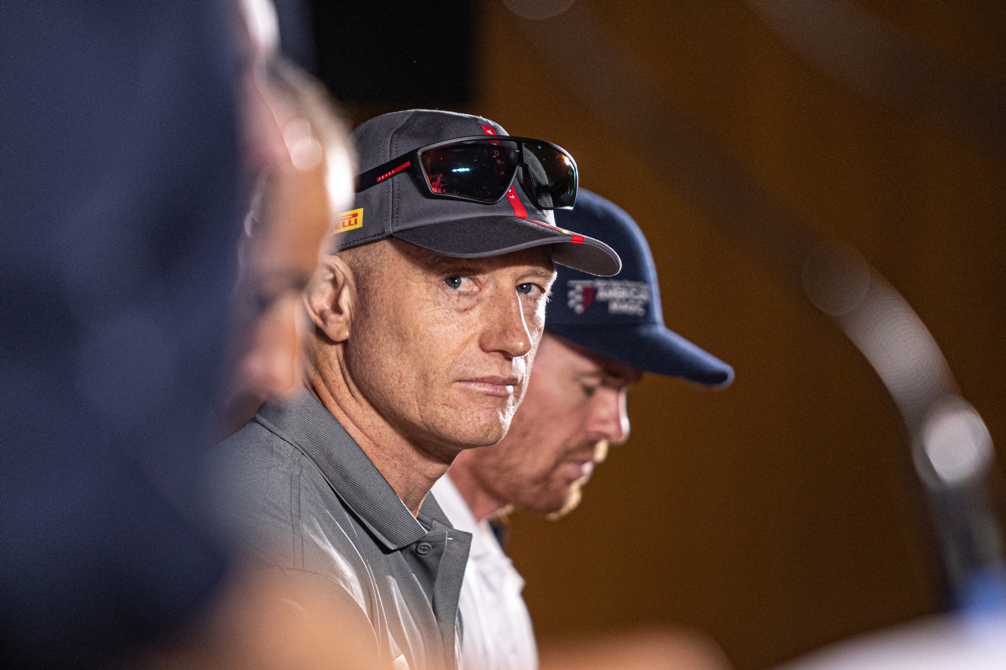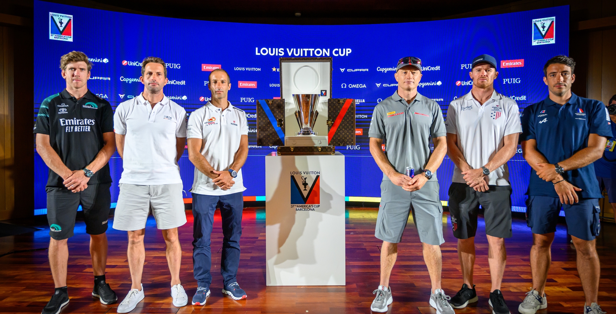 There was a serious tone to proceedings at the press conference ahead of the start of the Louis Vuitton Cup – which begins at 1400 CET on Thursday August 29 – with a palpable feeling of tension on the stage where the six assembled helmsmen sat either side of the glistening Louis Vuitton Cup. And rightly so, for the five Challenger teams everything is on the line now, with every race and every point counting – plus the brutal reality that at the end of the upcoming eight-day double Round Robin series, one Challenger will be eliminated.