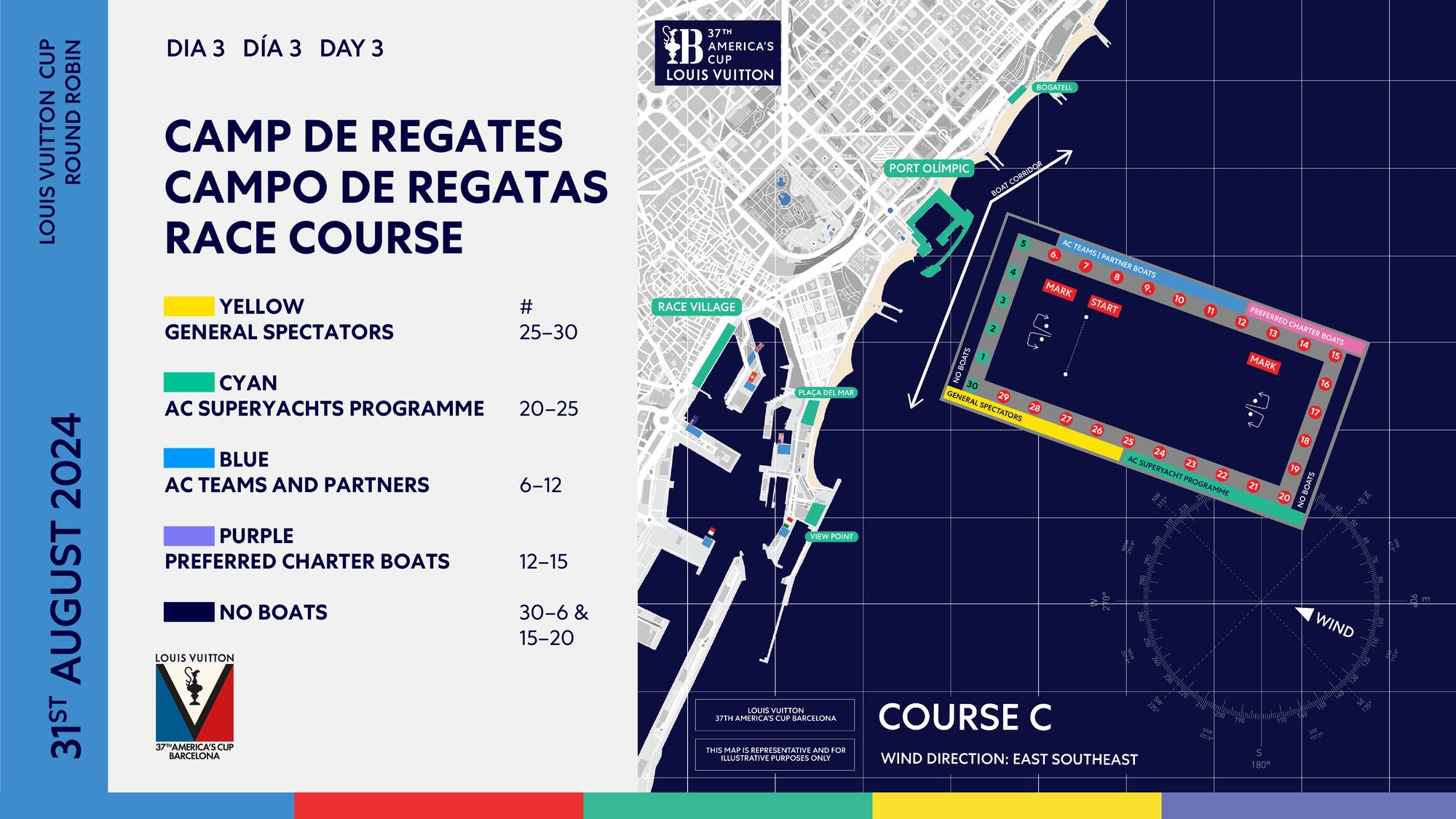 After two lost races yesterday due to the lower wind-limit of 6.5 knots not being achieved, Race Director Iain Murray has mandated for races seven and eight to be completed at the beginning of day three of the Louis Vuitton Cup. What this scheduling means is a packed day of racing for the spectators at the free-to-enter Race Villages and Fanzones with some six races to savour.