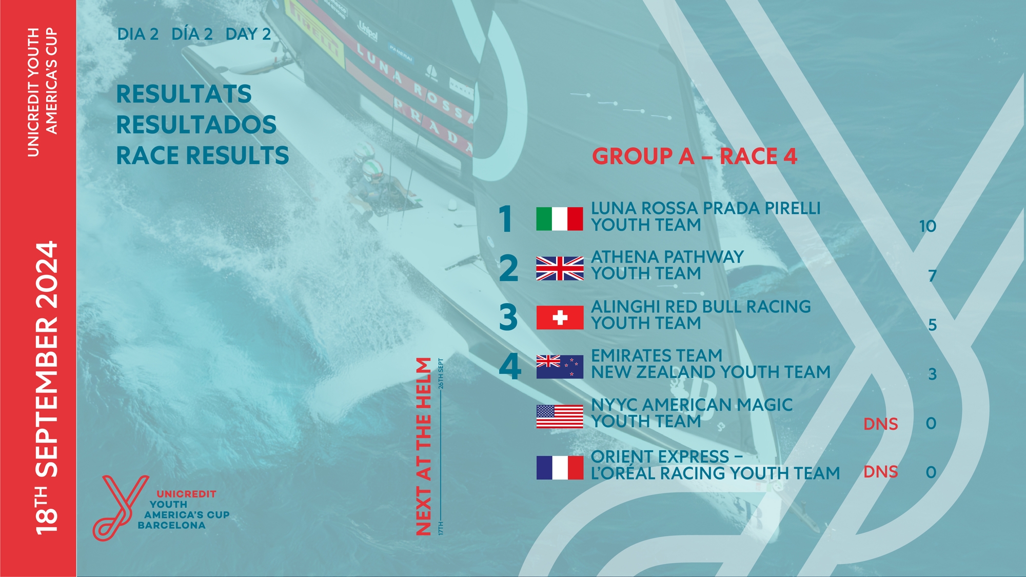 Four more races are to come for the America's Cup teams of Group A, but tomorrow all eyes will be on the UniCredit Youth America's Cup Group B Invited Teams who are scheduled to start racing tomorrow.