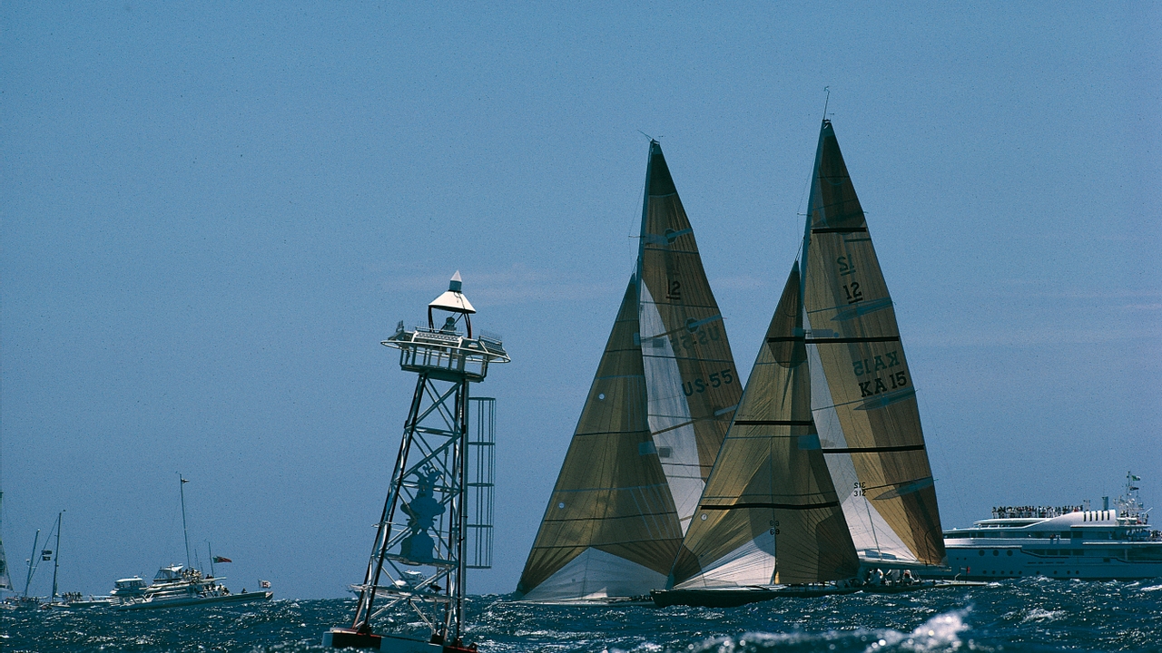 A close fight between Peter de Savary’s Victory ‘83 and Azzurra of the Yacht Club Costa Smeralda. Photo: @Carlo Borlenghi.