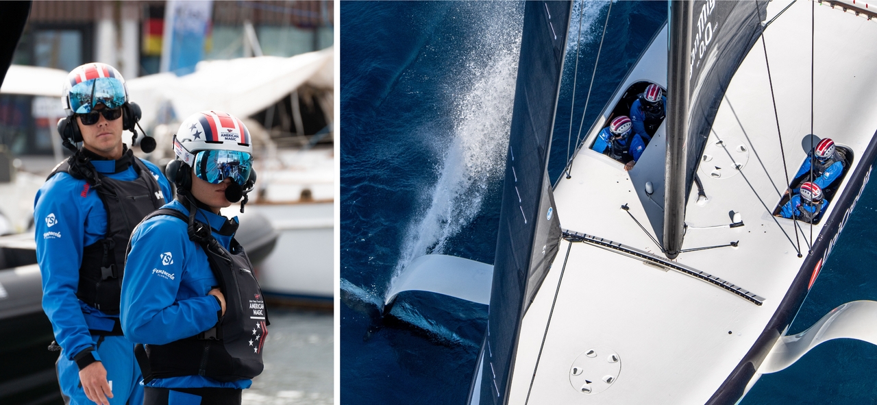 With the Italian and American teams securing their place in the winner-takes-all, one-on-one Final set between the opening two races of the Louis Vuitton Cup Final, attention was drawn to the other members of each team. For Luna Rossa Prada Pirelli, the speed-merchants who demonstrated unbelievably consistent results and comebacks from impossible situations, Gradoni was joined by the helming brilliance of Gianluigi ‘Gigi’ Ugolini, and the trim talent of Rocco Falcone and Federico Colaninno. Melges meanwhile, for NYYC American Magic, had the fast-driving Kyle Navin in the port pod and the emerging talents of Severin Gramm and Finn Rowe on trim.