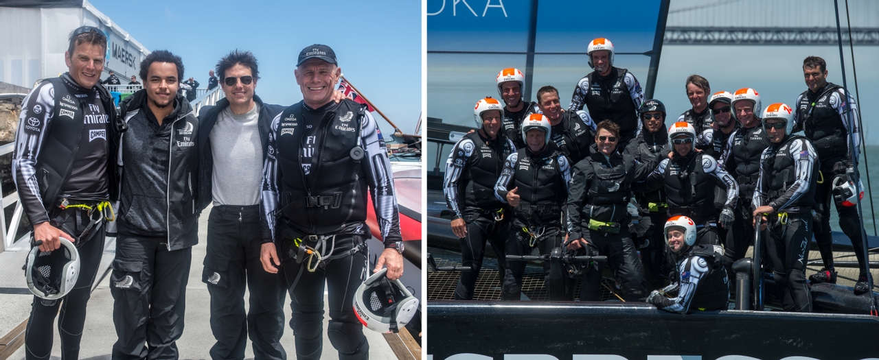 From Top Gun to America's Cup: Tom Cruise and his son Connor sailing aboard Emirates Team New Zealand's AC72 in San Francisco (Photos: © Chris Cameron / Emirates Team New Zealand).