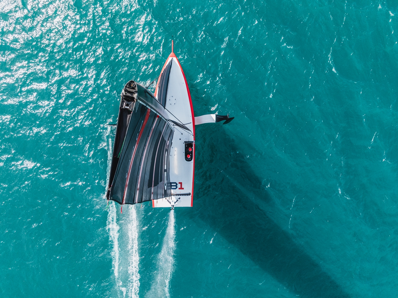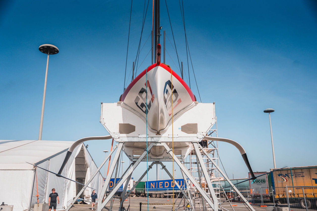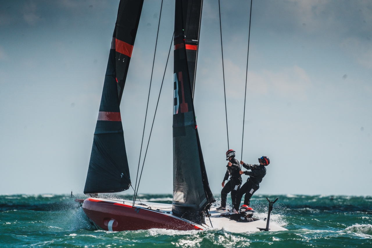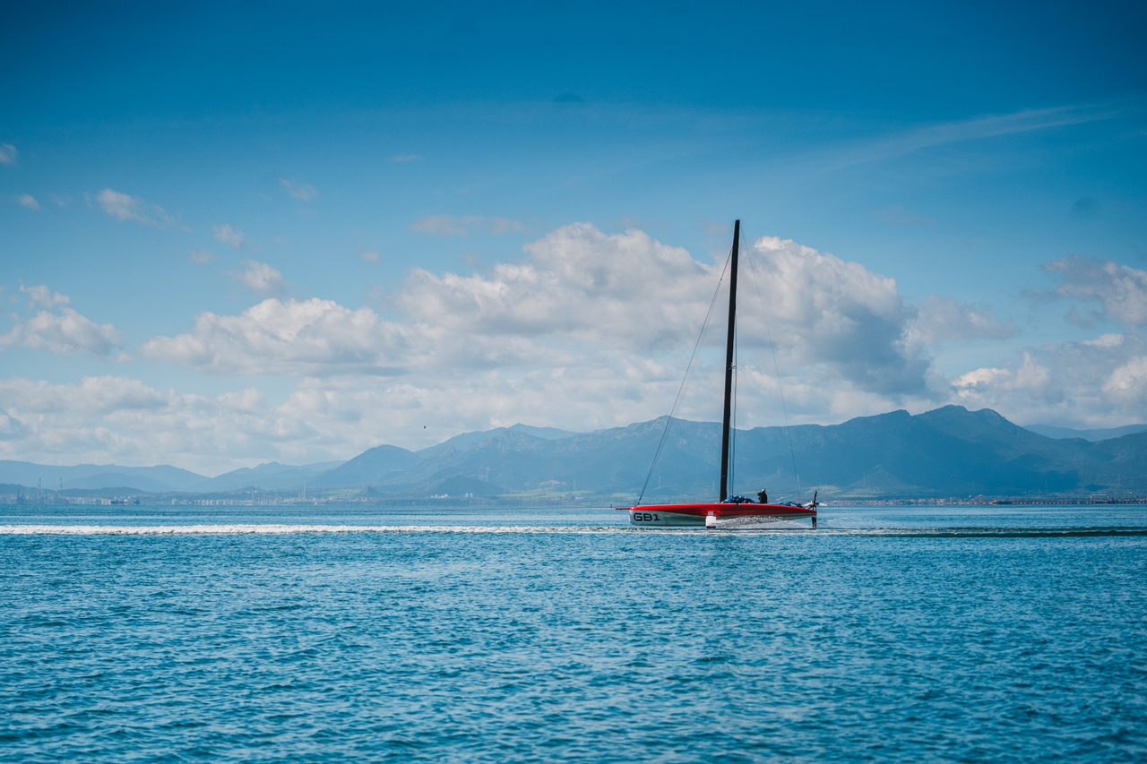 GB1 sailed 5 out of 7 days across a wide range of conditions.Top boat speed 48 knots. Operated up to the top end of the wind limit (21–23 knots), with additional sessions in lighter conditions, successfully foiling in 6–7 knots. Experienced varied sea states, including large waves from an offshore mistral and onshore sea breeze conditions. Weather conditions ranged from rain to sunshine, with both flat water and waves. Overall, it was a productive week commissioning the yacht and trialling the Athena Pathway sailors.