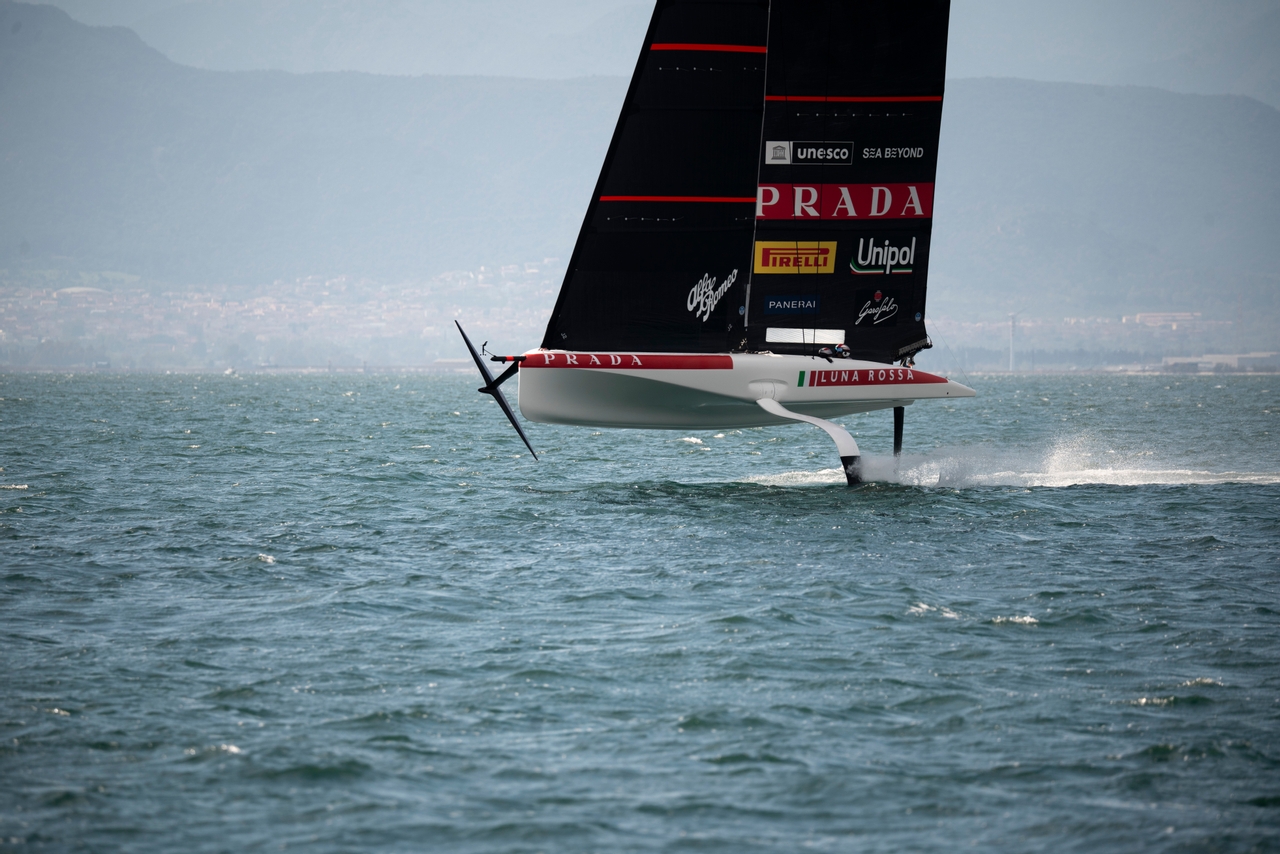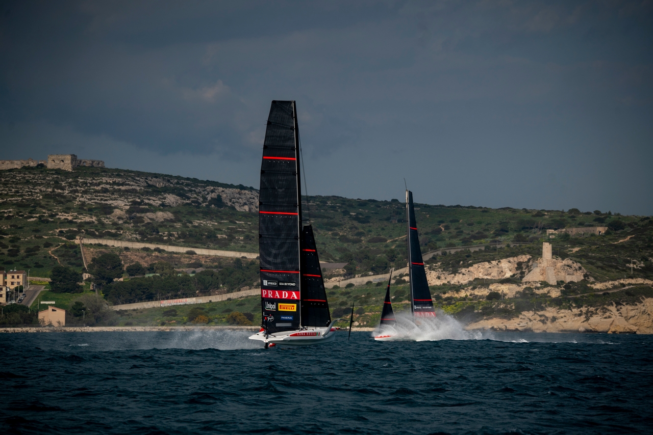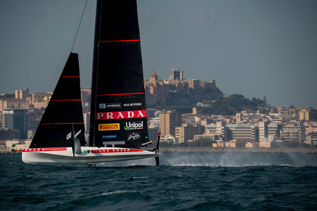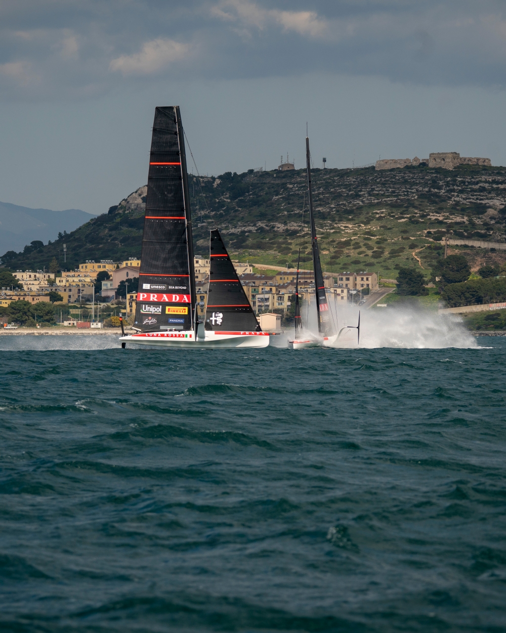 Judging by the smiles after training, the Luna Rossa team are thoroughly enjoying their two-boat sessions in Cagliari, Sardinia with Peter Burling saying after the session on Tuesday (17th March): “Awesome day sailing today. We got a lot more wind than we thought, up to 20 knots at times and a bit of bumps, so that was nice racing the two boats against one another. It’s been a fun day.”