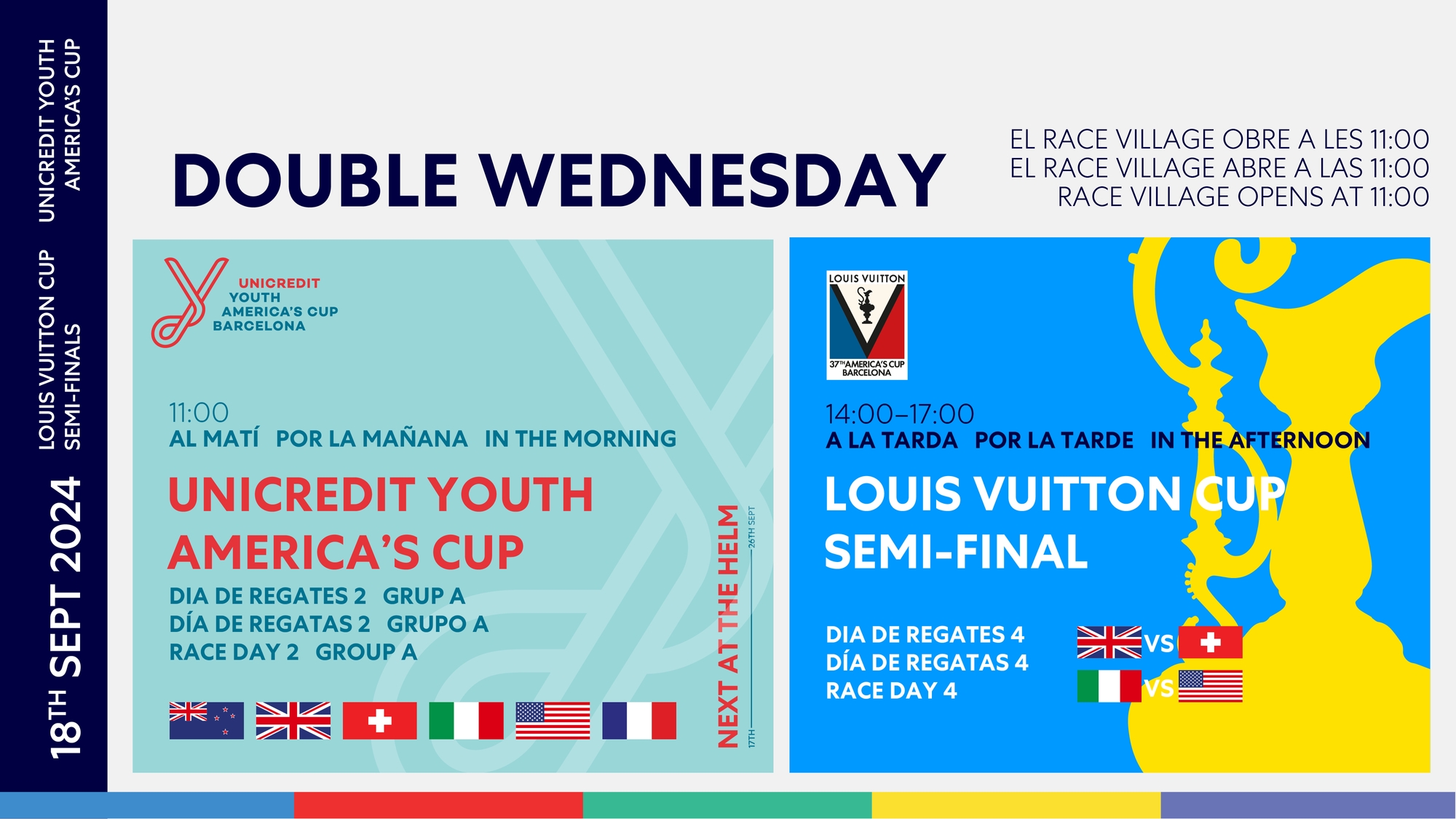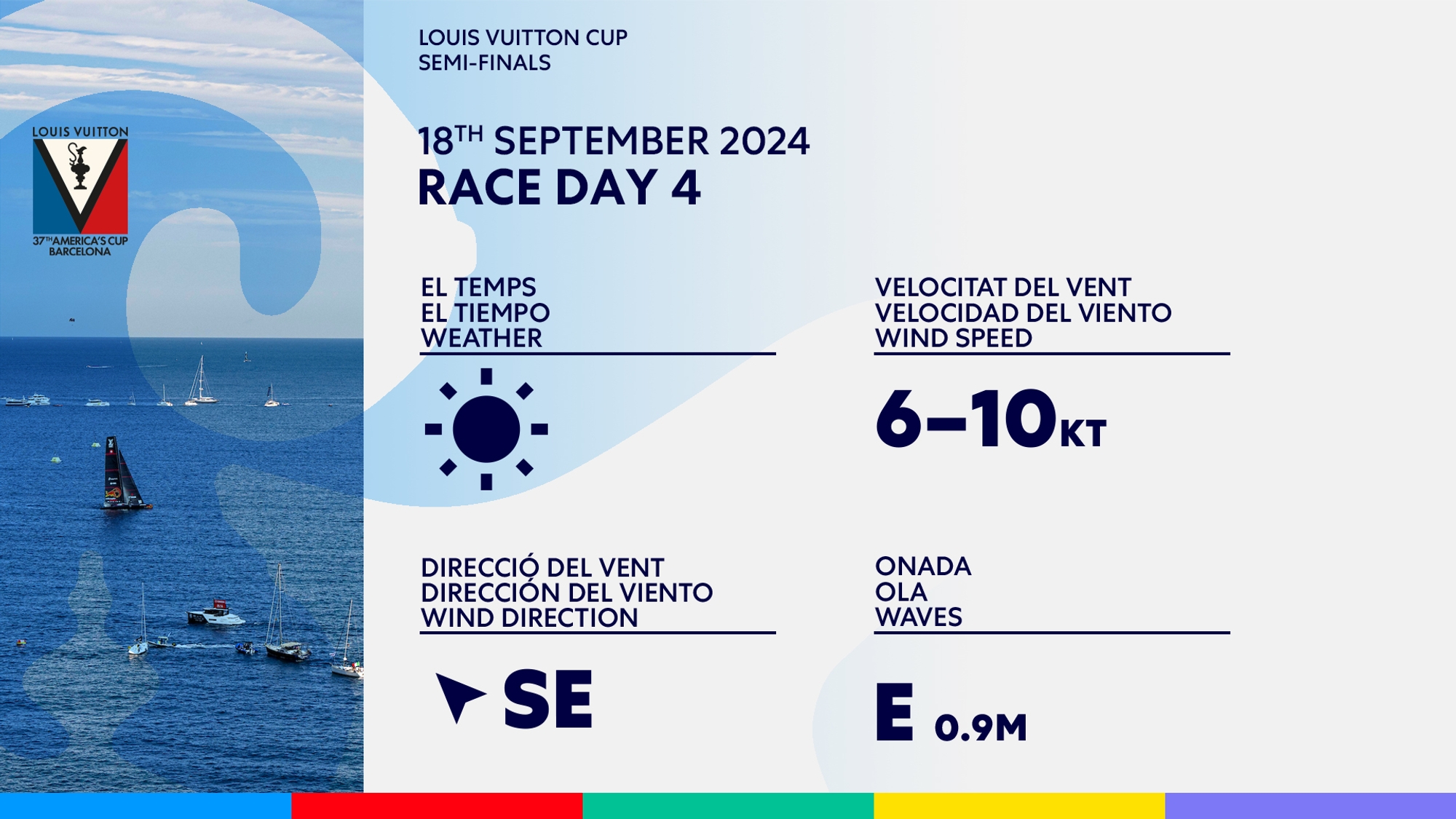 Racing is set to start at 1410 CET with the first race being the scheduled match between INEOS Britannia (Port Entry) and Alinghi Red Bull Racing. Following straight after will be Luna Rossa Prada Pirelli (Port Entry) against NYYC American Magic.
